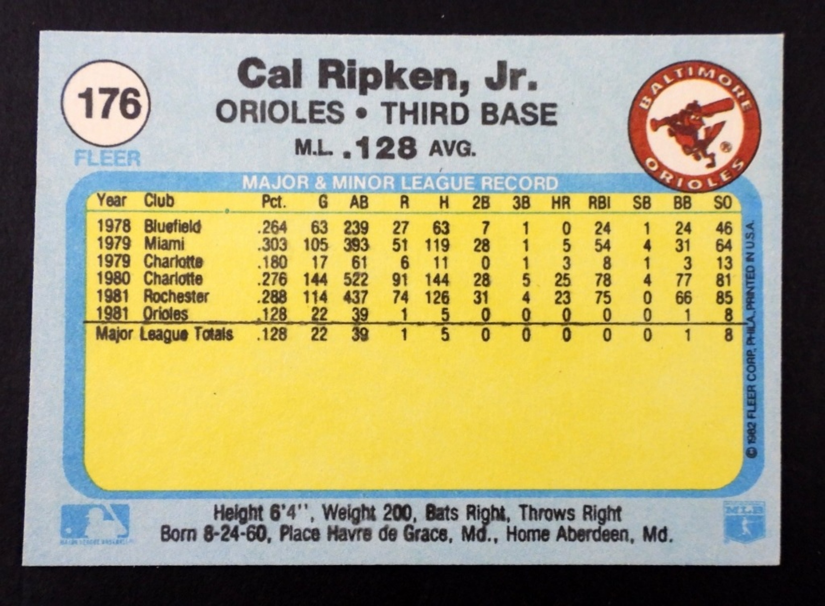 VGEX #176 CAL RIPKEN JR FLEER 1982 CARD