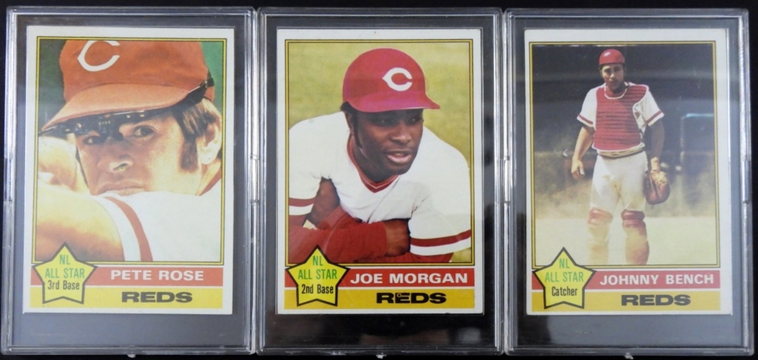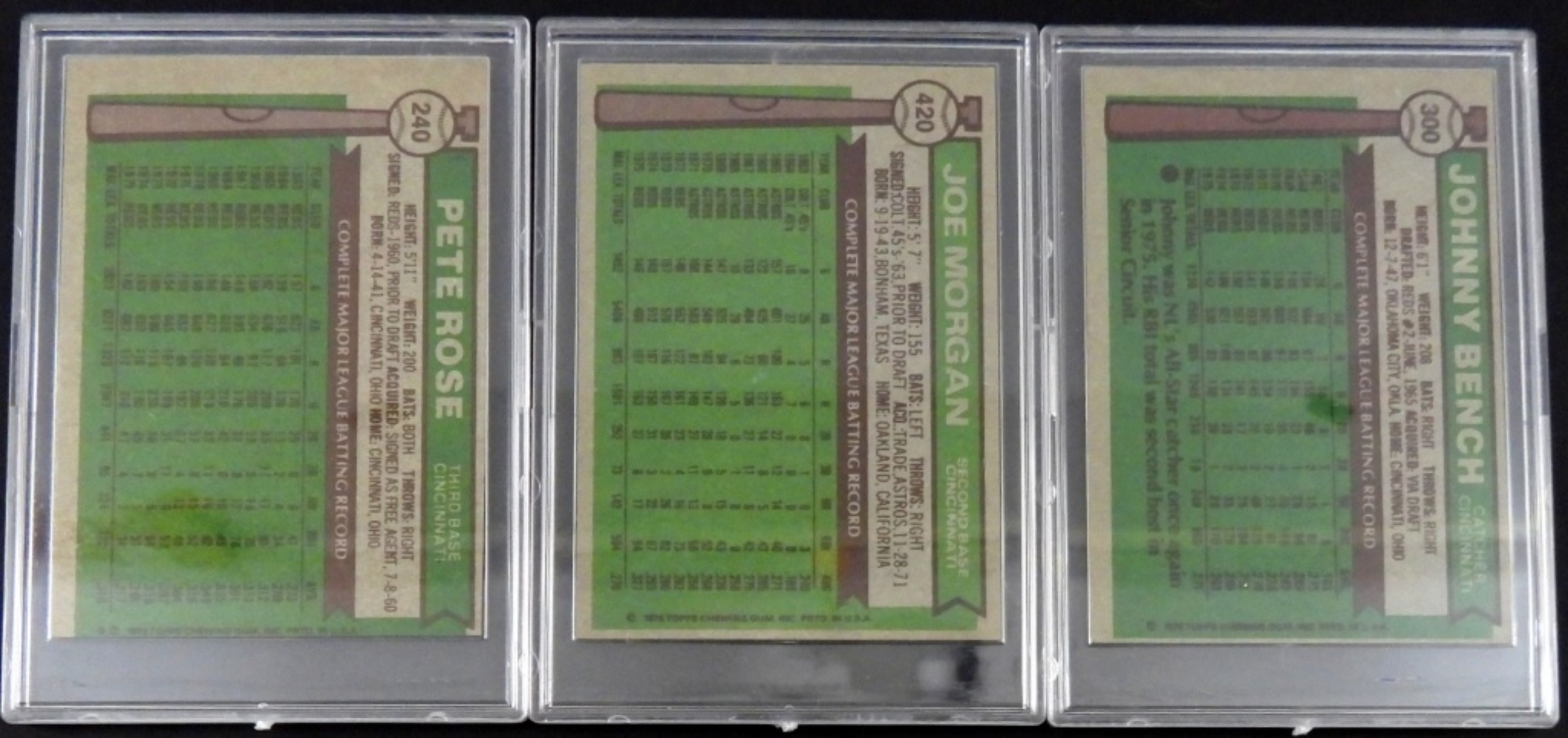 1976 TOPPS NL ALL STAR CARDS: JOE MORGAN, PETE ROSE, AND JOHNNY BENCH, VGEX.