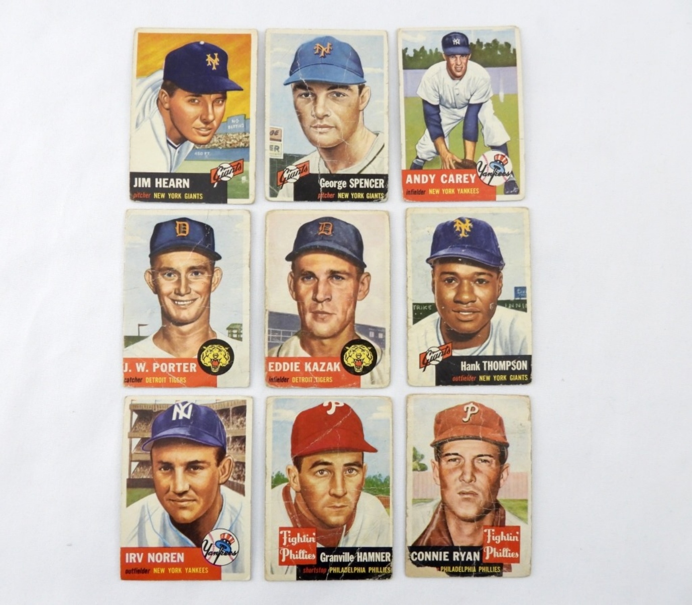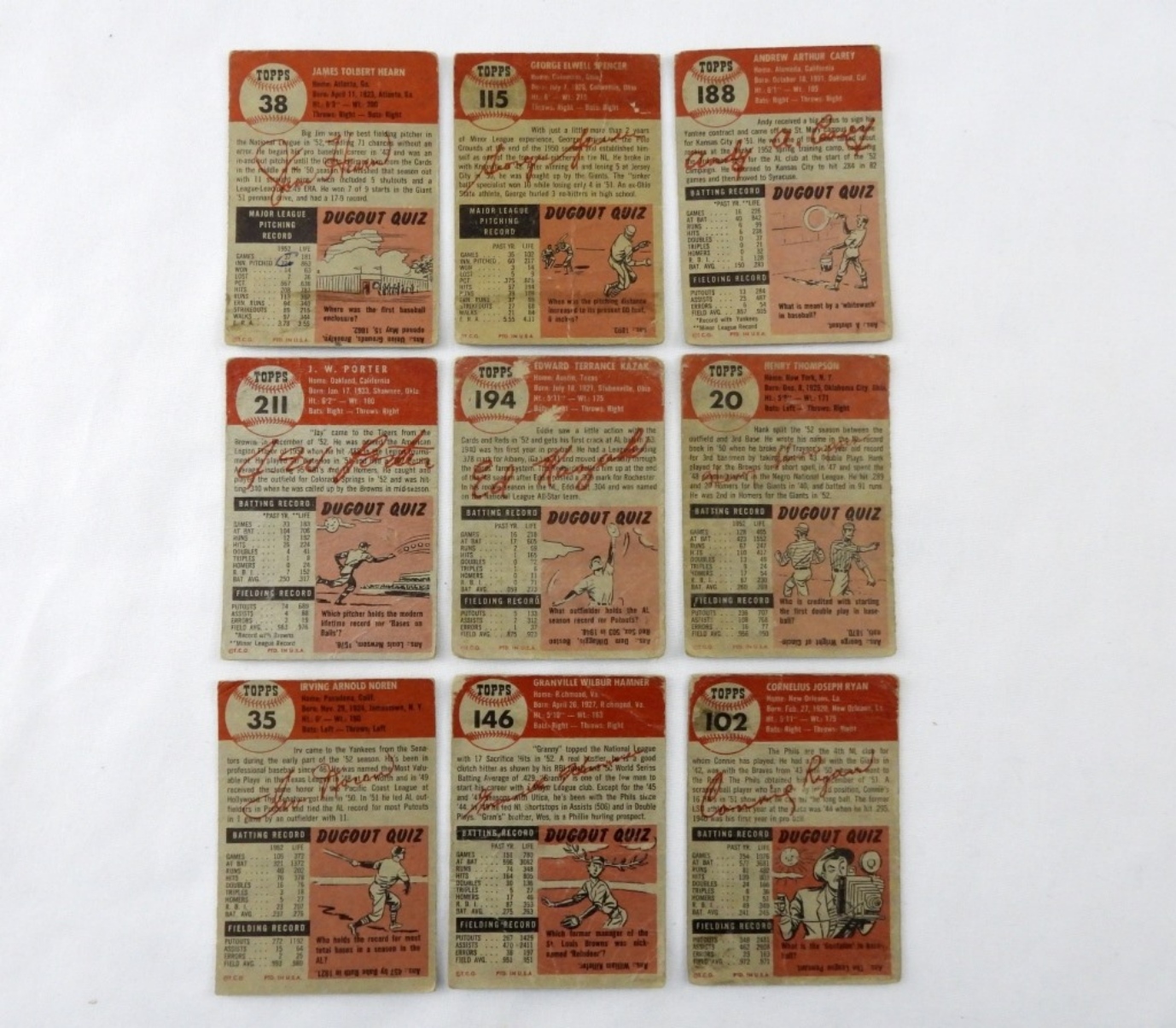 1953 ASSORTED TOPPS LOT: 115, 38, 20, 188, 102, 146, 35, 194, 211 VG–CREASING ON CARDS