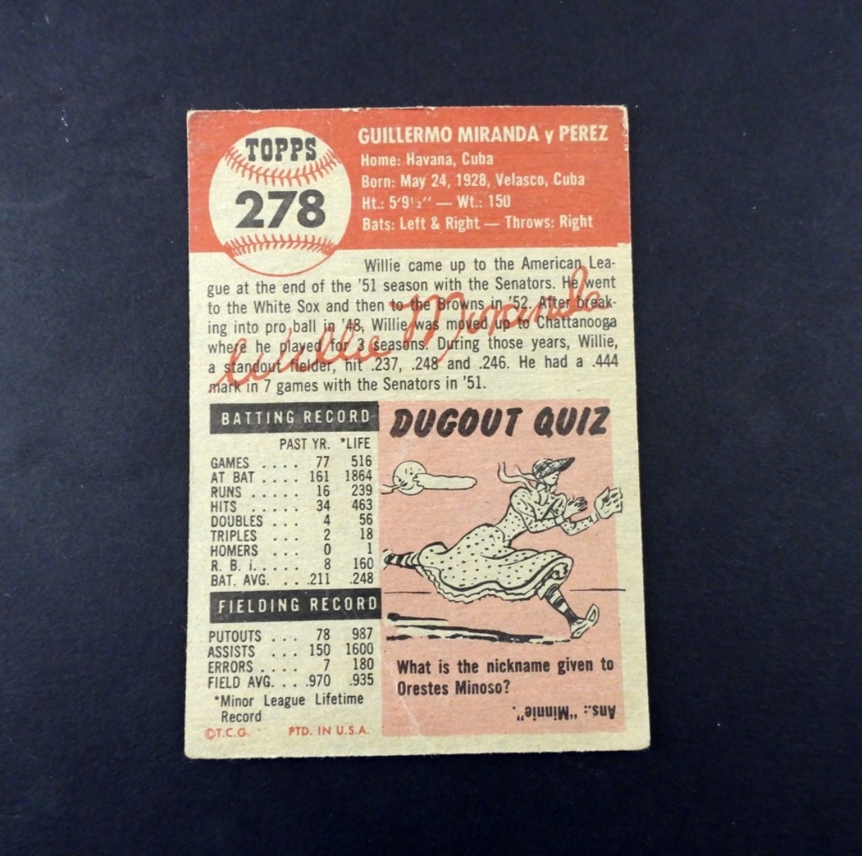 1953 WILLIE MIRANDA NO 278, VG (SLIGHT CREASE)