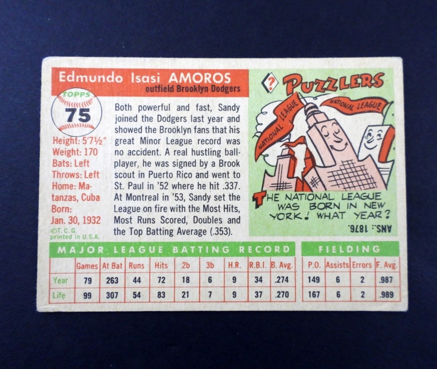 1955 TOPPS TRADING CARD SANDY AMOROS VGEX