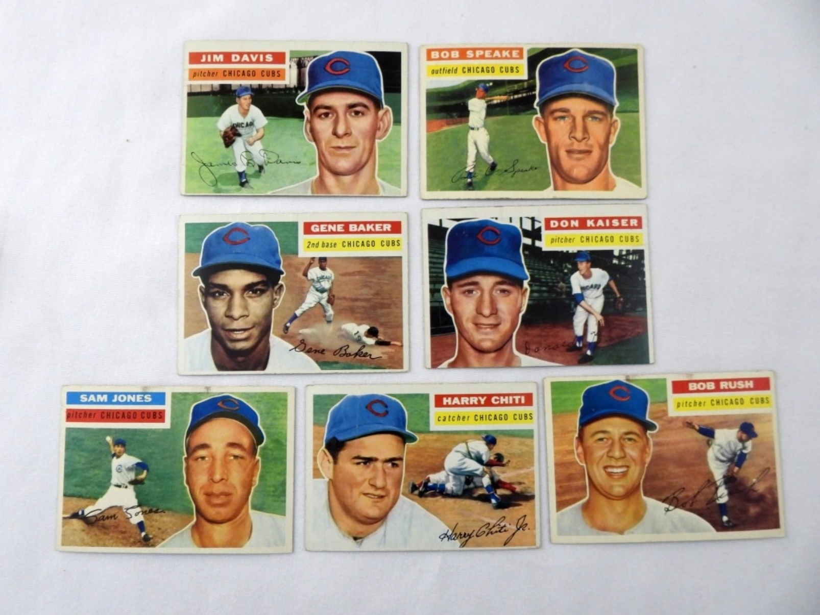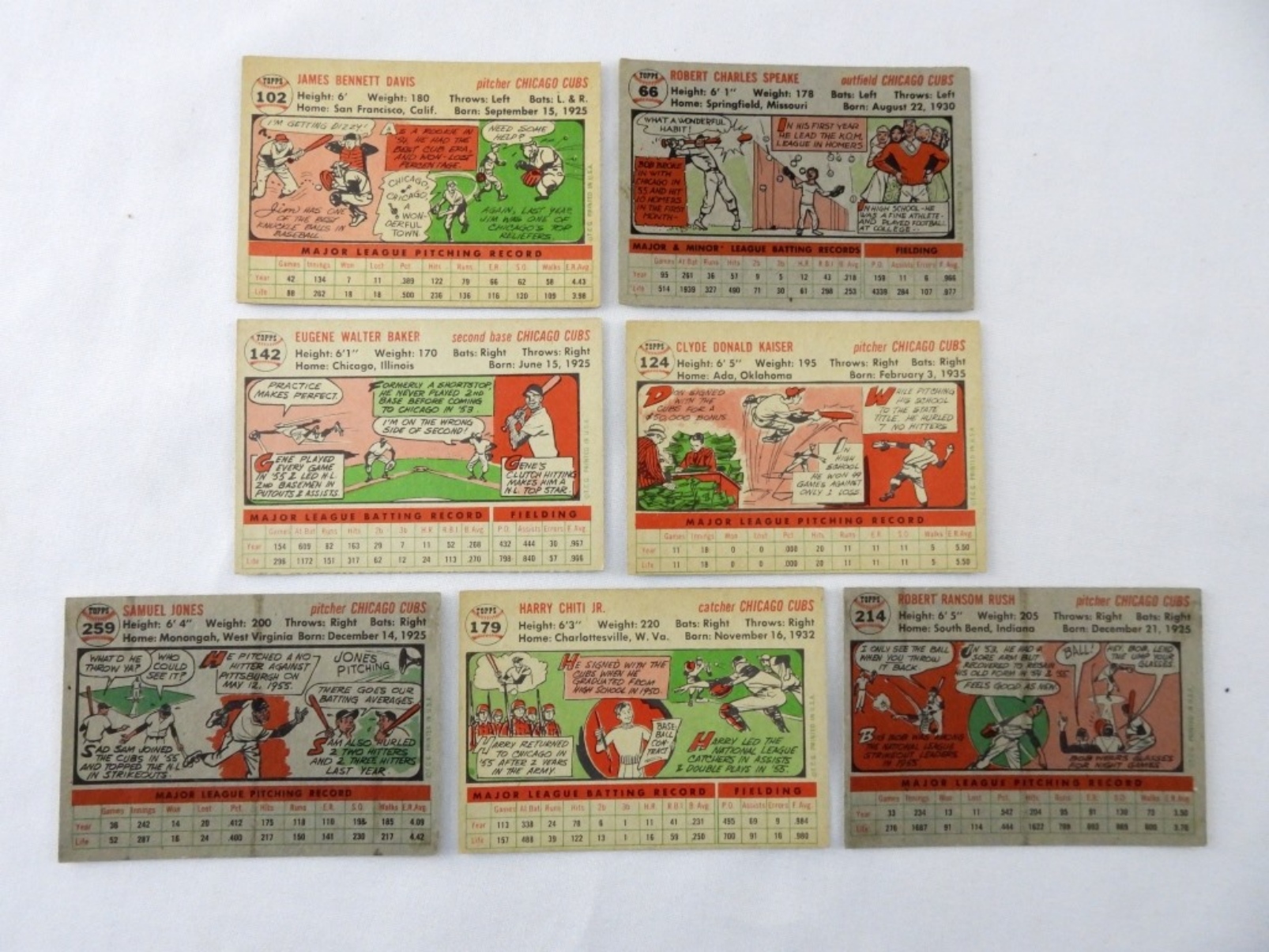 7 TOPPS 1956 CHICAGO CUBS CARD LOT: 66, 102, 124, 142, 179 (SLIGHT CREASING), 214, 259, VG-VGEX. BID NOW!