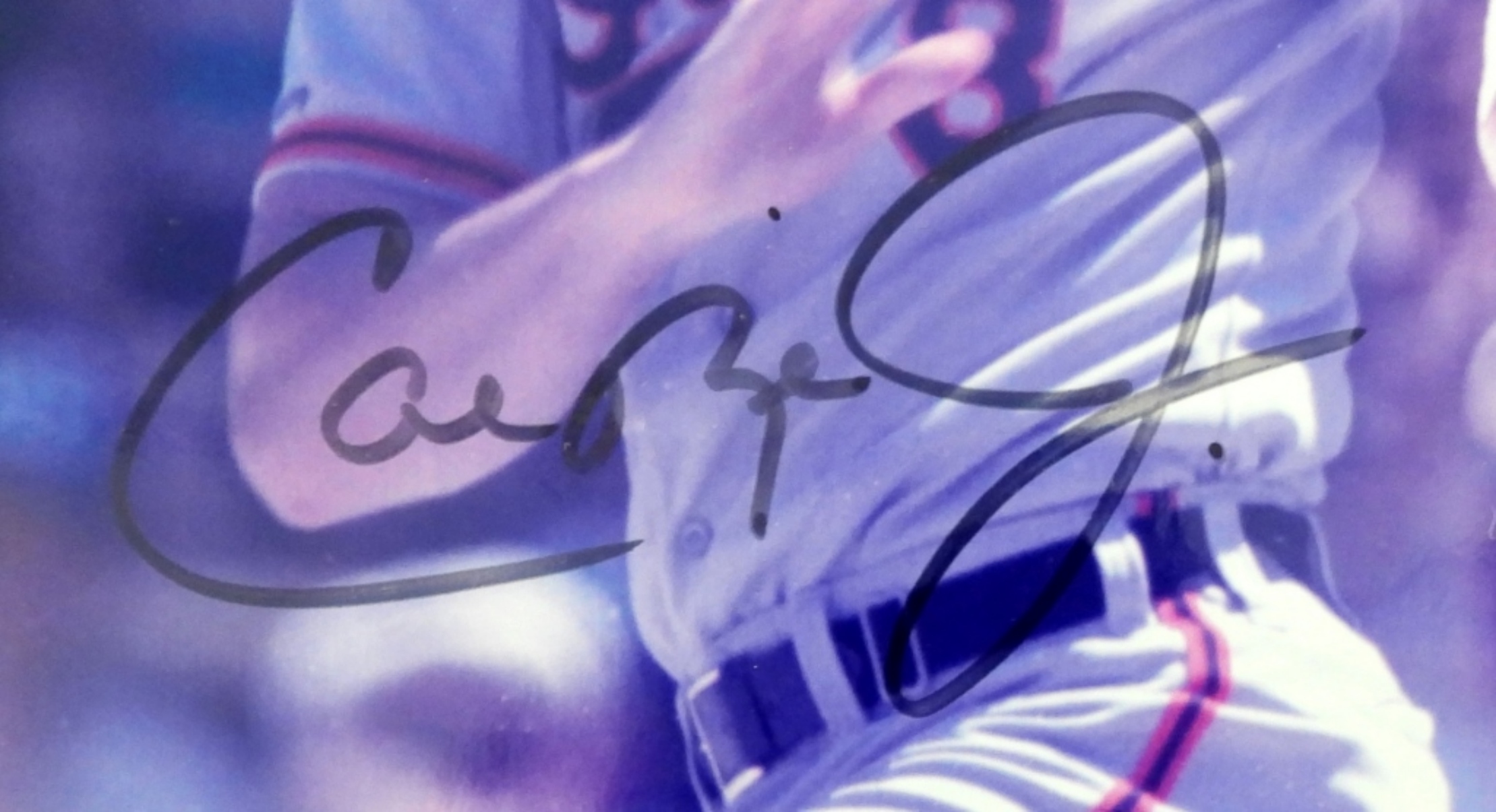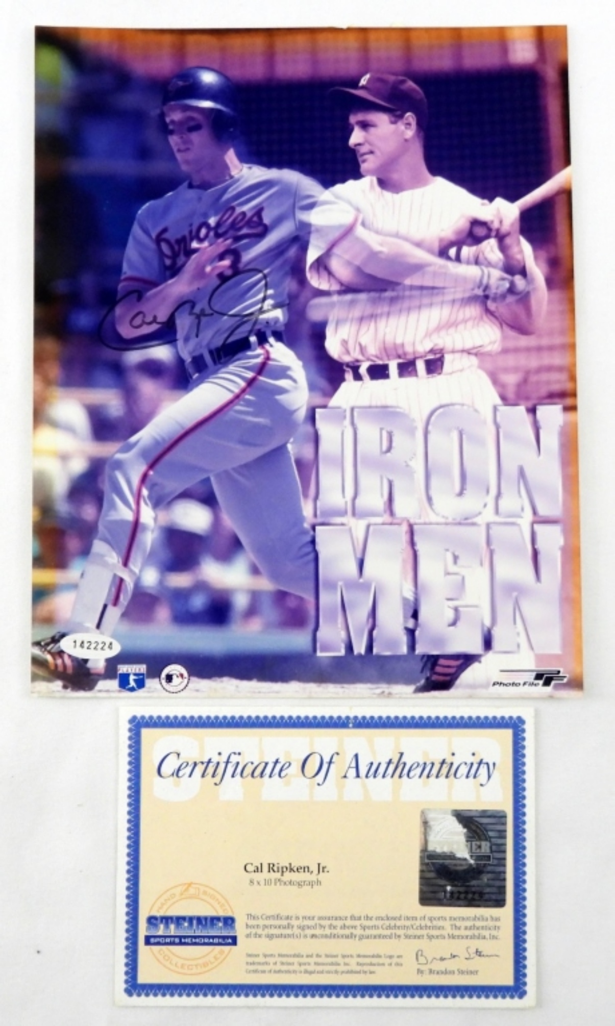 AUTOGRAPHED PHOTO – CAL RIPKEN JR AUTOGRAPH- IRON MAN- STEINER. IN GOOD CONDITION, DOES HAVE SOME COLOR FADING ON THE PHOTO COA- NOT VERIFIED