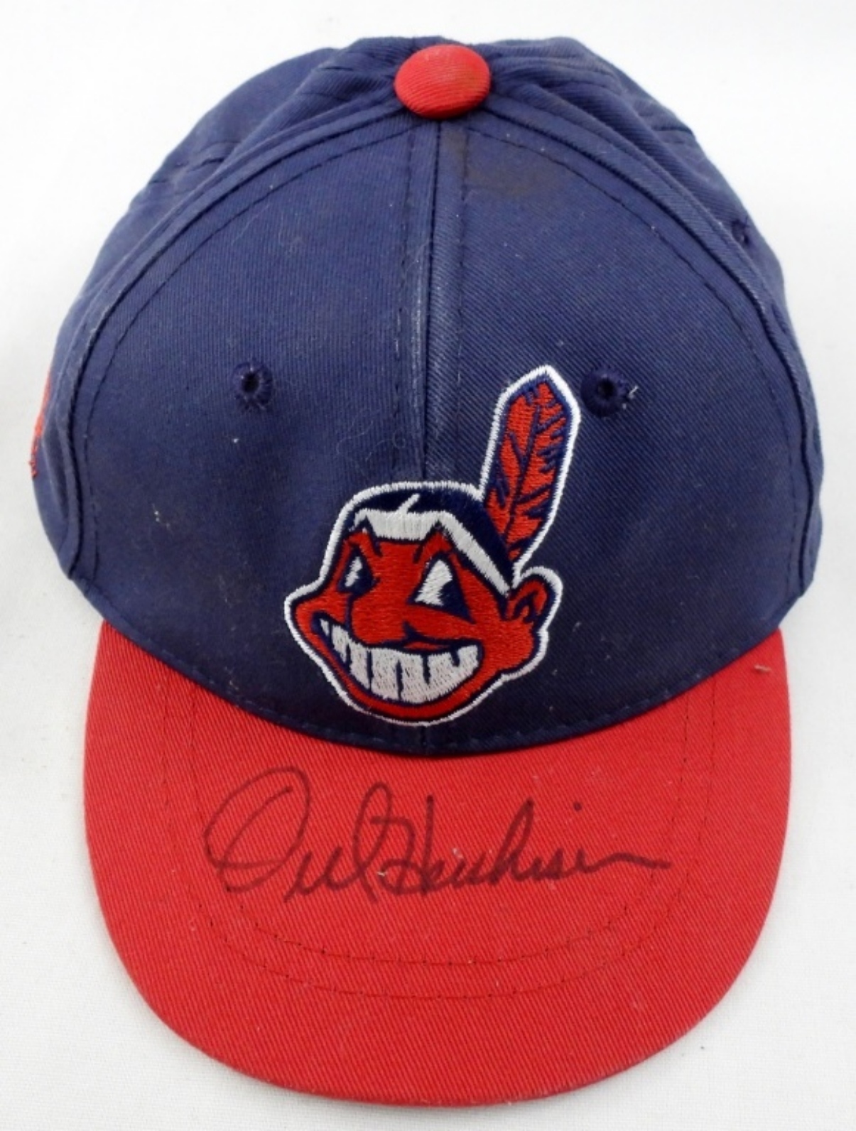 CHIEF WAHOO- CLEVELAND INDIANS HAT- AUTOGRAPHED BY ORAL HERSHISER. IN GOOD CONDITION.NO COA NOT VERIFIED
