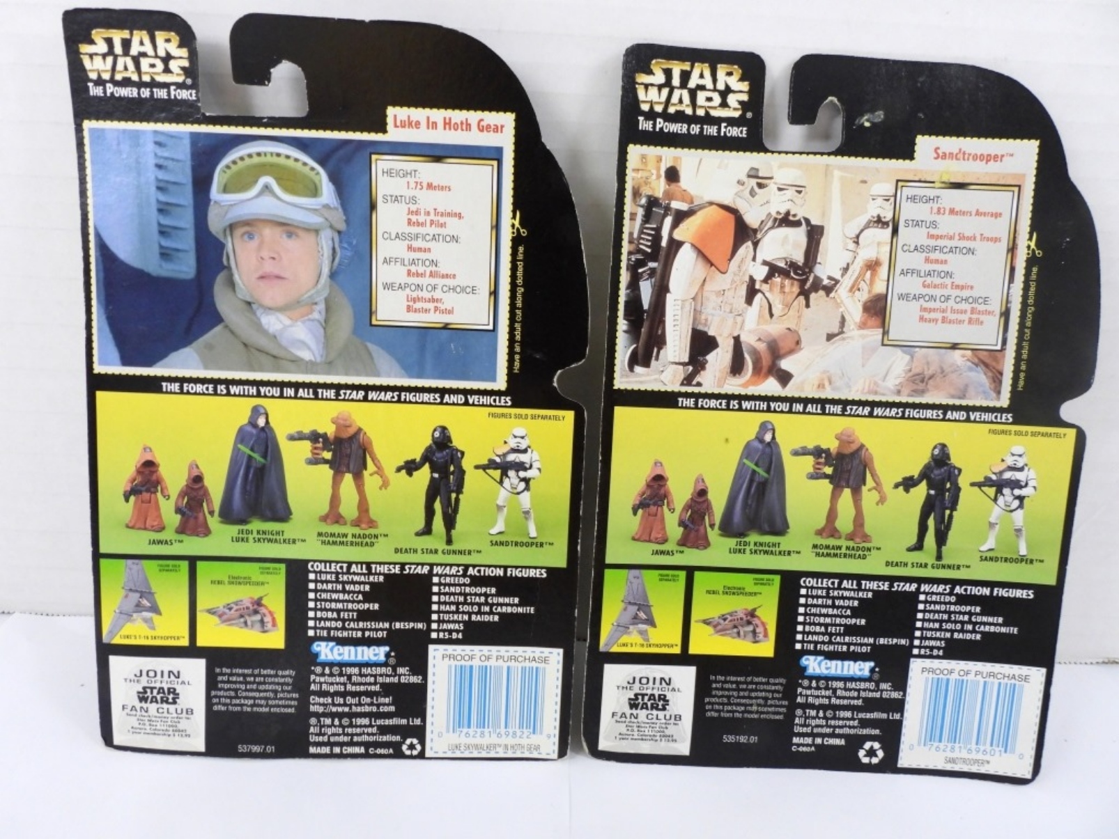 (2) KENNER 1996 STAR WARS THE POWER OF THE FORCE FIGURINES, LUKE SKYWALKER & SAND TROOPED