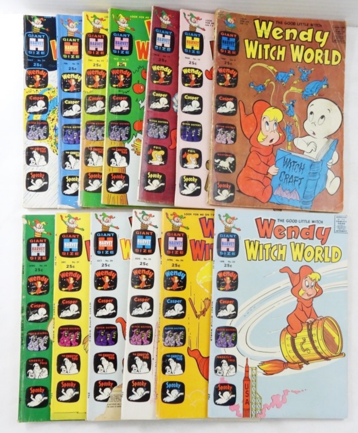 13 HARVEY, WENDY WITCH WORLD COMICS 1964-1971. ONE IS IN POOR CONDITION. THE REST ARE GOOD – VF.