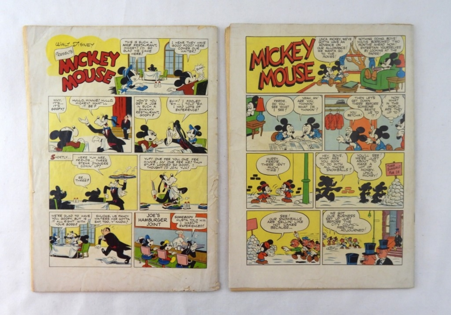 DELL COMICS- MIKEY MOUSE IN THE ICY HAND NO.28 DEC-JAN 1953- IN FAIR TO GOOD CONDITION DOES SHOW WEAR ON THE FRONT COVER AND THE SPINE. MICKEY MOUSE IN “THE MYSTERY OF THE DOUBLE- CROSS RANCH” NO.313, 1950- IN GOOD