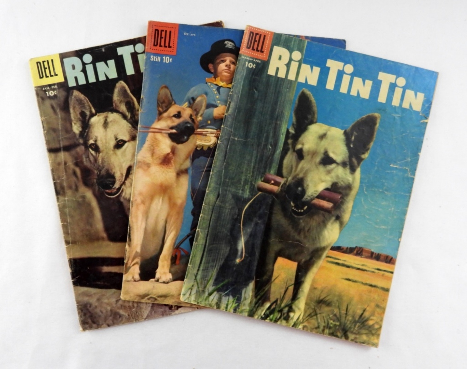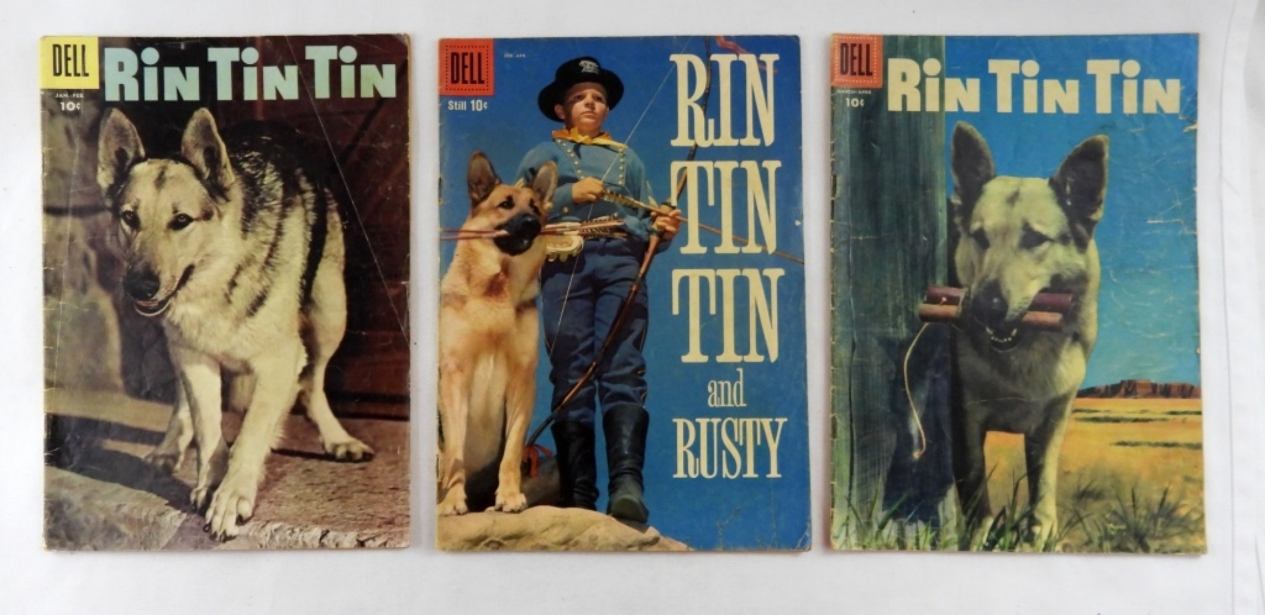 RIN TIN TIN- NO. 12, MAR- APRL 1956. RIN TIN TIN AND RUSTY- NO.29, 1959. RIN TIN TIN- NO. 17, JAN- FEB 1957- ALL ARE PREOWNED IN FAIR TO GOOD CONDITION.