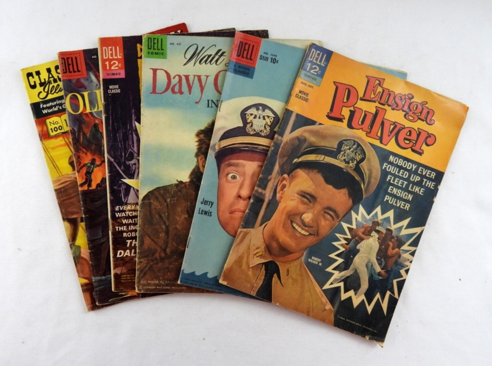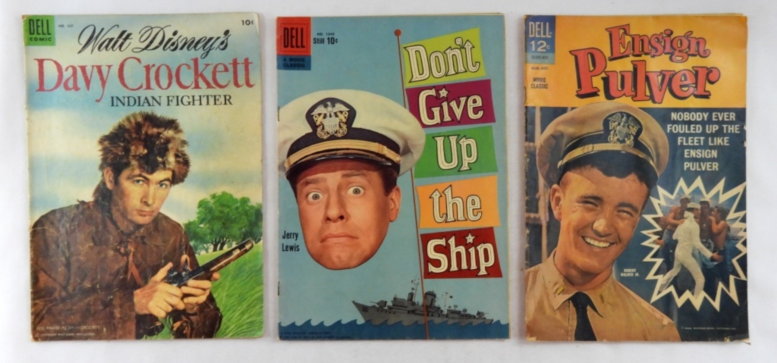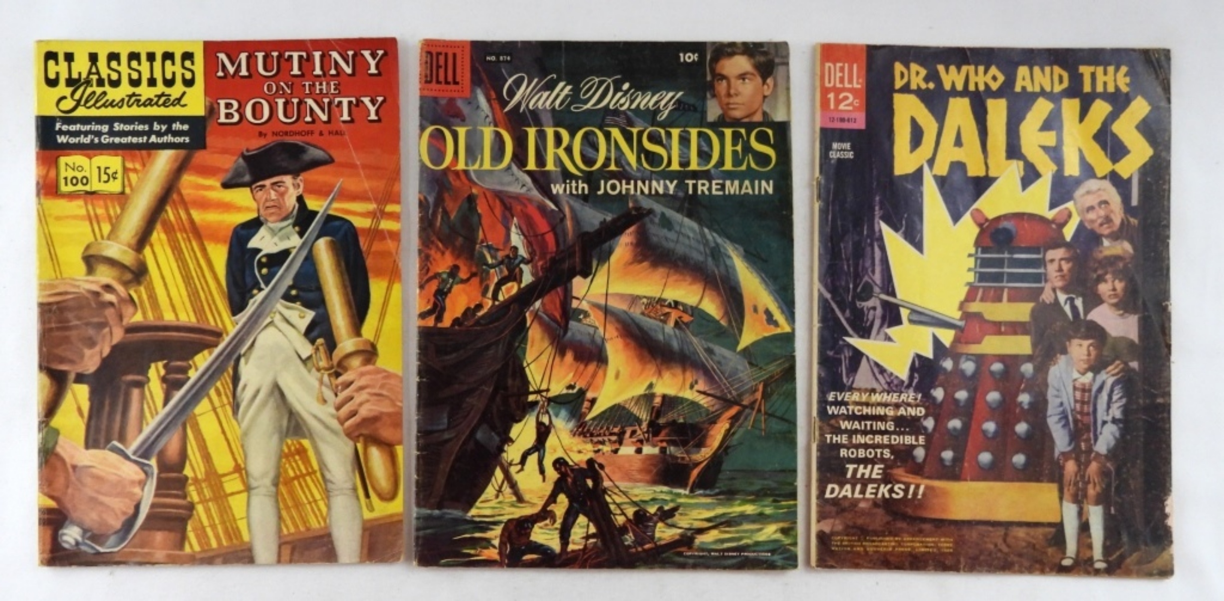 ENSIGN PULVER AUGUST- OCTOBER 1964. DON’T GIVE UP THE SHIP- NO. 1049, 1959.WALT DISNEY’S DAVY CROCKETT INDIAN FIGHTER- NO.# 631,1955. DR. WHO AND THE DALEKS- 1966. WALT DISNEY OLD IRONSIDES WITH JOHNNY TREMAIN- NO#
