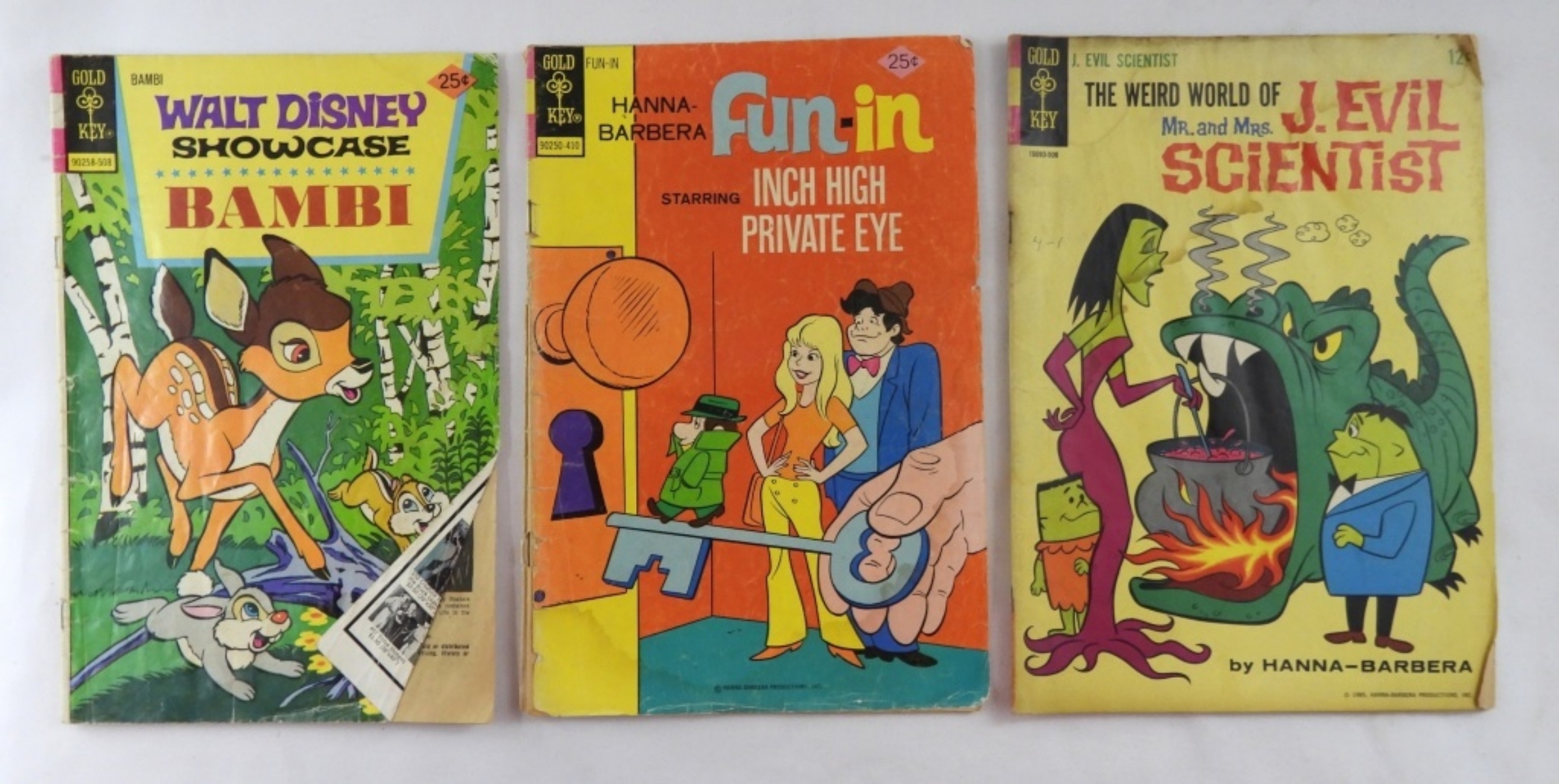 THE WEIRD WORLD OF MR. AND MRS.. J.EVIL SCIENTIST- NO 3, 1965- IN GOOD CONDITION DOES HAVE SOME PEN MARKS ON THE FRONT COVER. HANNA BARBERA FUN-IN STARRING INCH HIGH PRIVATE EYE NO 14 OCTOBER 1974- FRONT COVER