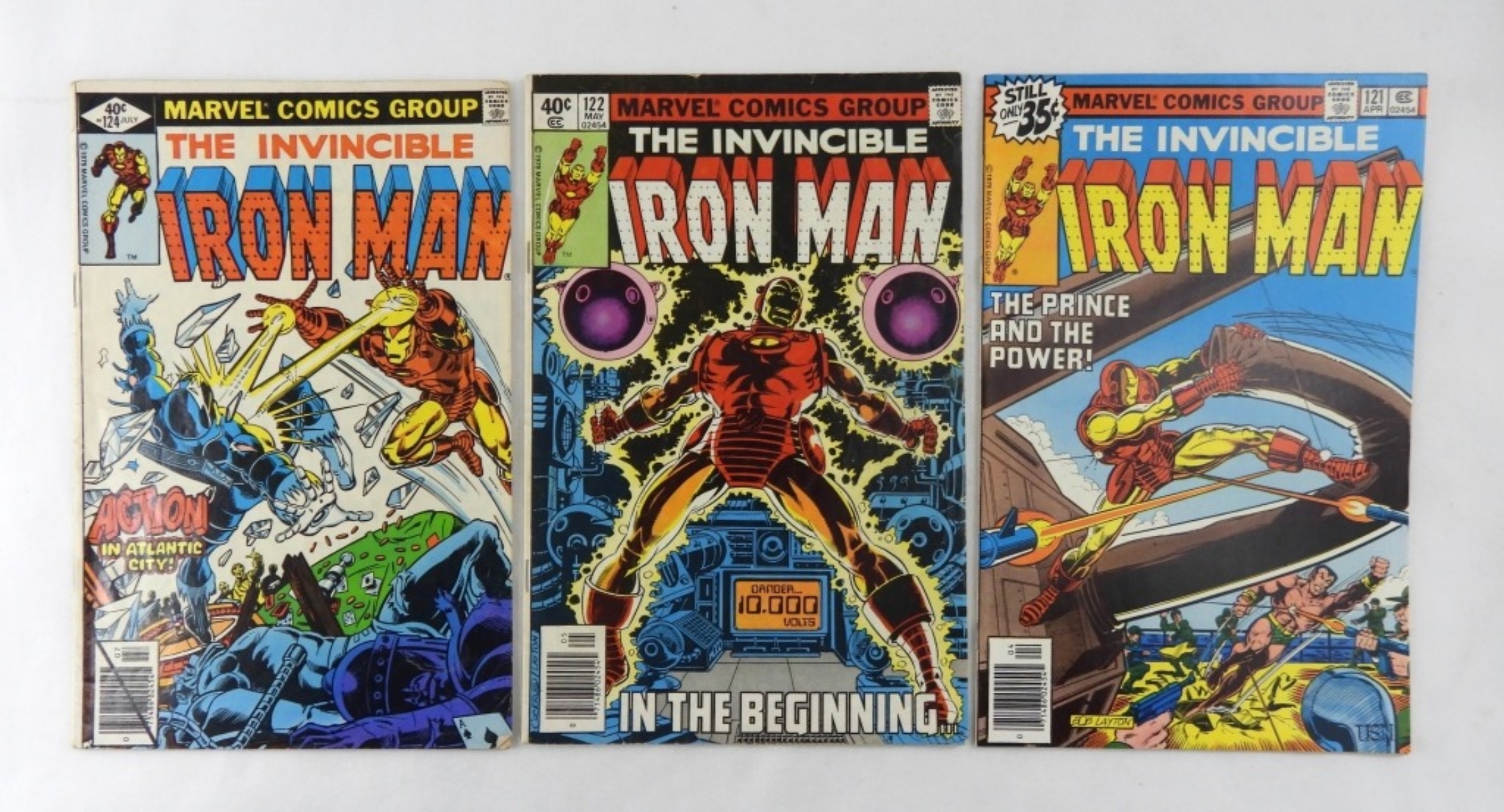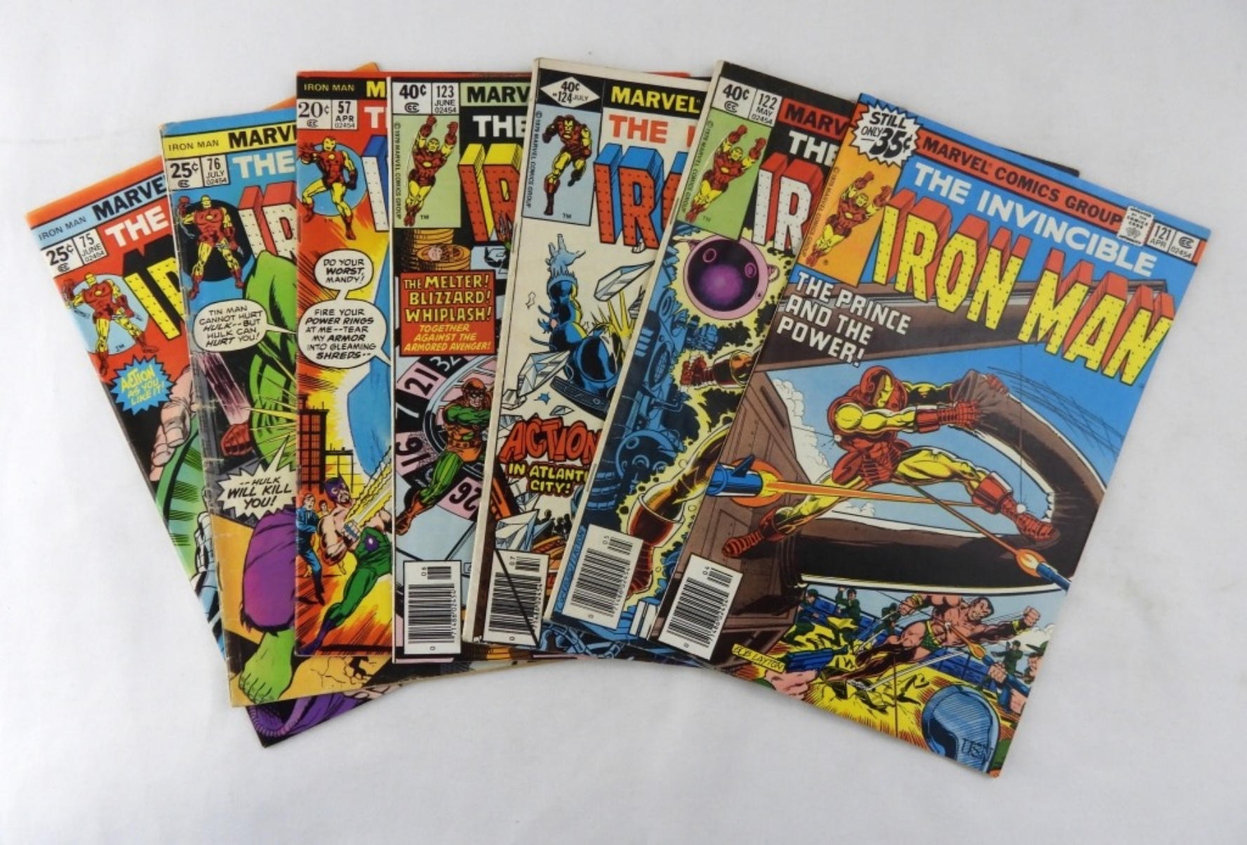 7 IRON MAN MARVEL COMICS #121, 122, 123, 124, 57, 75, 76, GOOD-VERY GOOD CONDITIONS, BID NOW!