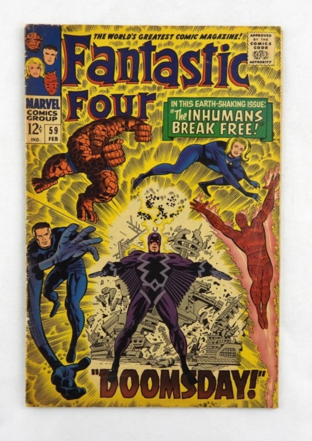 MARVEL- SILVER AGE COMIC- FANTASTIC FOUR VOL. 1, NO. 59, 1967 IN GOOD CONDITION DOES SHOW SOME WEAR, PREOWNED.