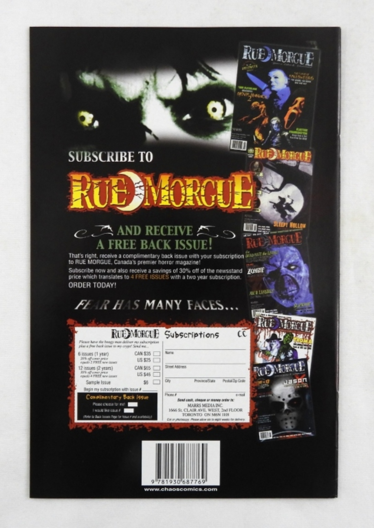 2001 CHAOS COMIC- HALLOWEEN II- IN A GOOD CONDITION LIKE NEW. PREOWNED.