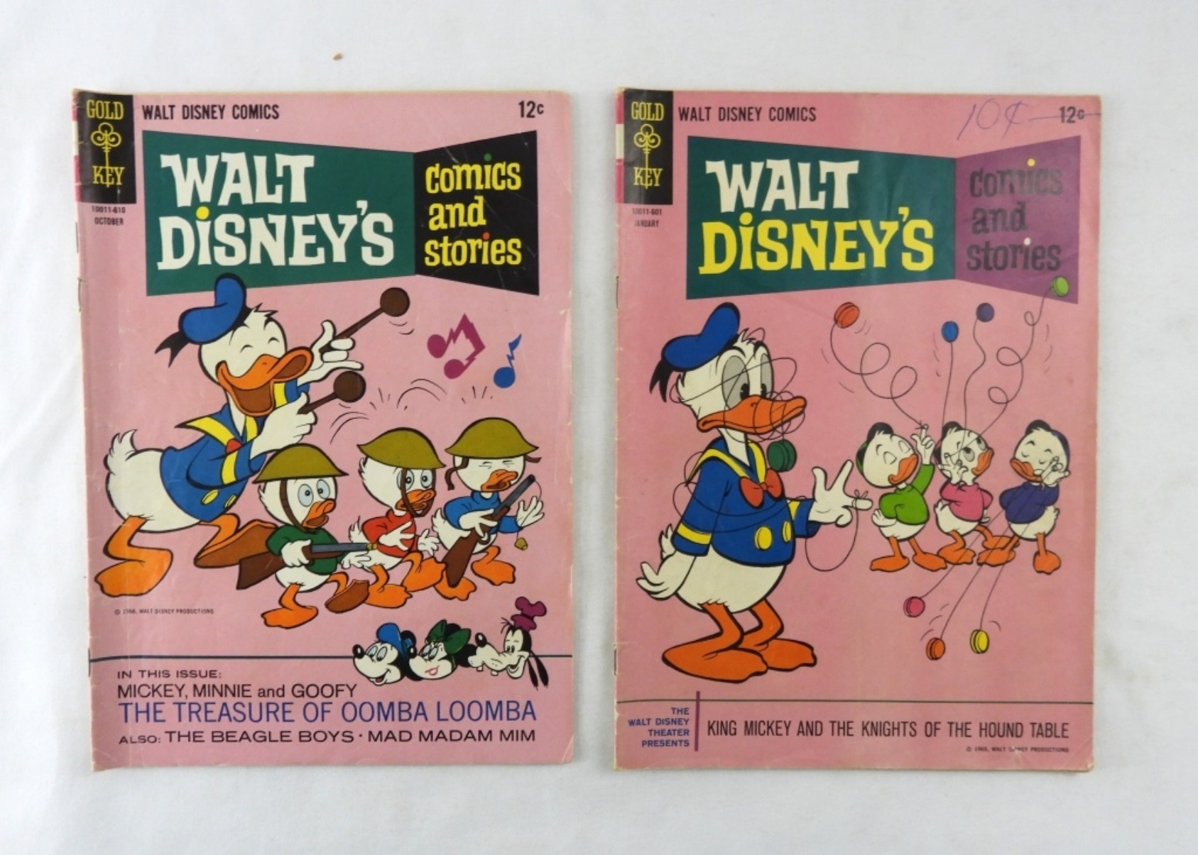 5 SILVER AGE GOLD KEY WALT DISNEY’S COMICS AND STORIES 1966-1968. 1966 # 4, 1, 1968 #3, 2, 12. MIXED CONDITIONS