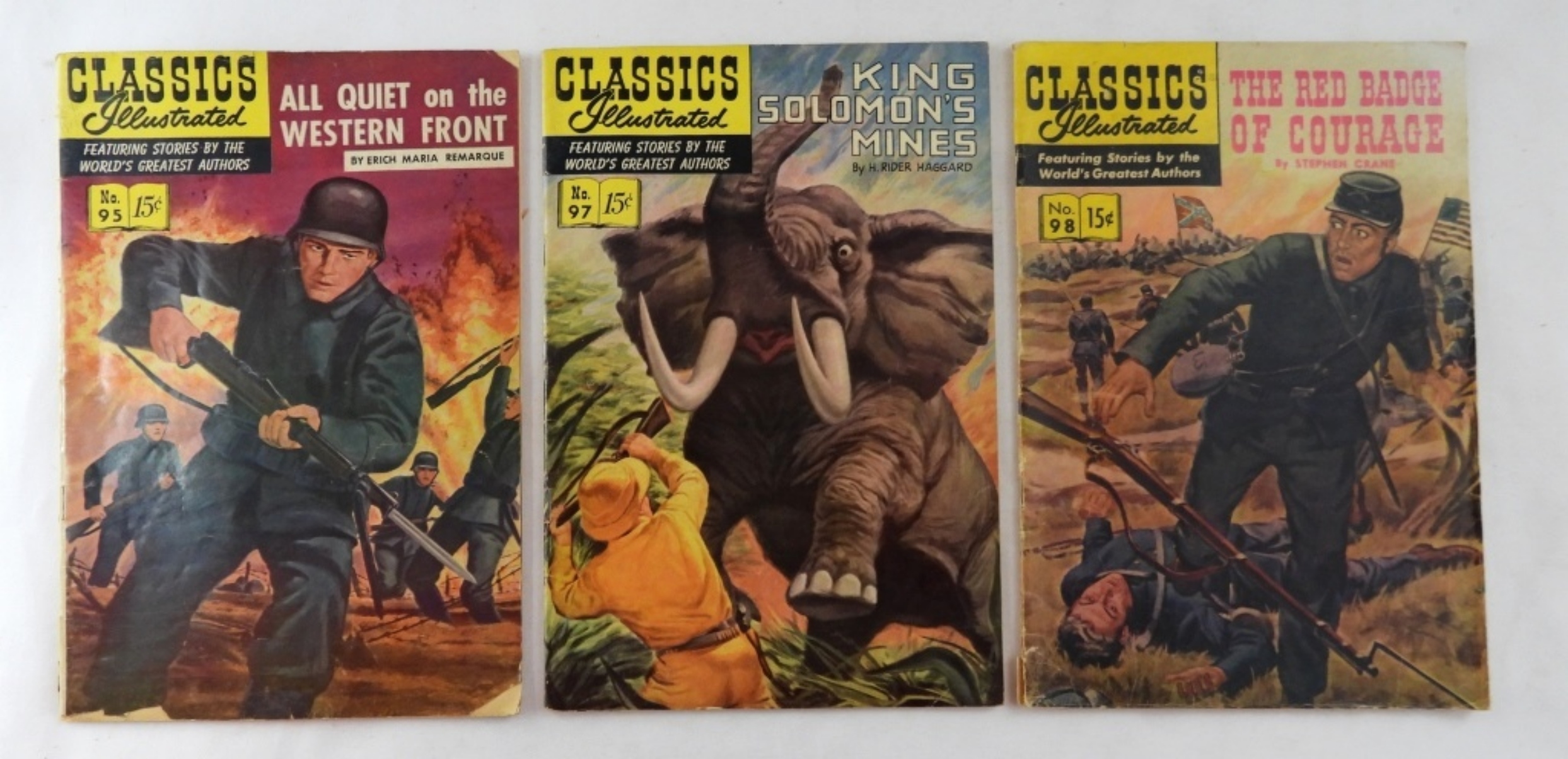 15 ASSORTED VINTAGE CLASSIC ILLUSTRATED: MIX BETWEEN #95-114, MIXED CONDITIONS, BID NOW!
