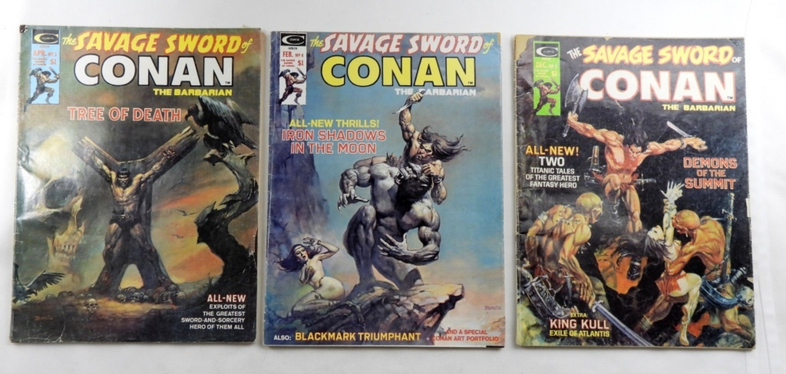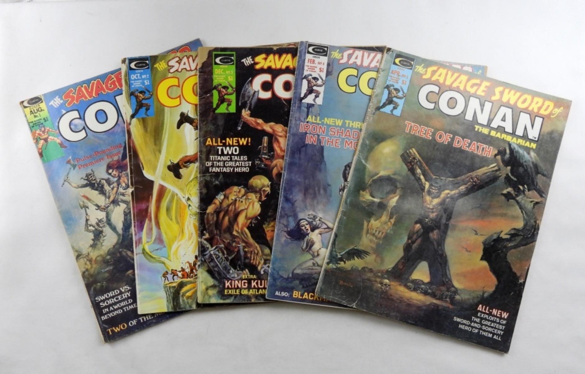 GOOD CONDITION CURTIS THE SAVAGE SWORD OF CONAN THE BARBARIAN #1-#5, #5 BACK COVER COMING OFF THE SPINE