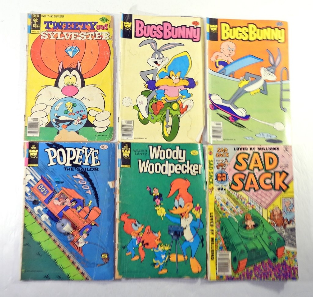 GOLD KEY TWEETY & SYLVESTER 30 CENT 1977-FAIR. GOLD KEY BUGS BUNNY 40 CENT 1979-FAIR. GOLD KEY BUGS BUNNY 40 CENT 1979-VG. WHITMAN POPEYE 40 CENT 1980-VG. WHITMAN WOODY WOODPECKER 50 CENT 1981-FAIR.