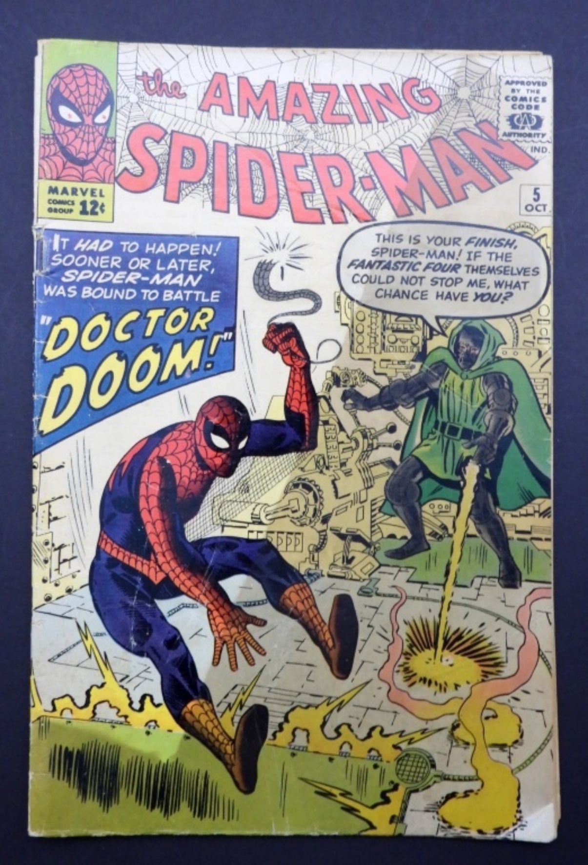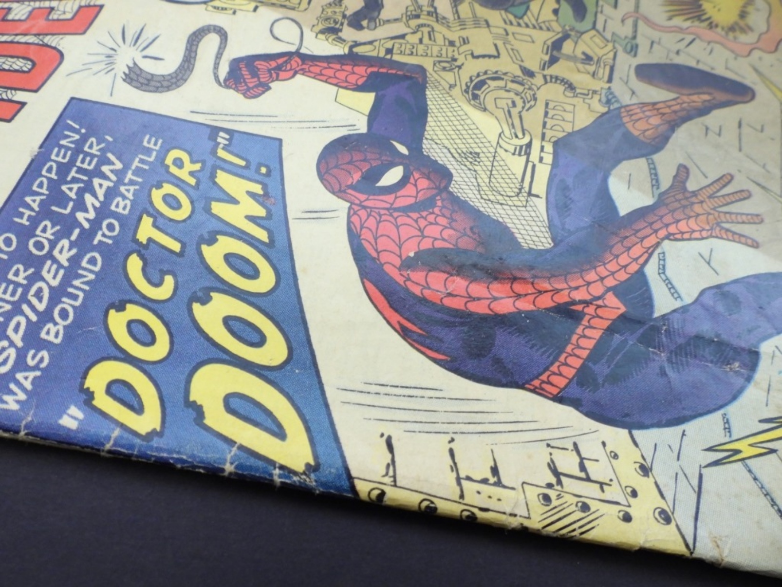 FIRST BATTLE OF SPIDER-MAN vs DOCTOR DOOM – COVER DISCOLORED / STAINED but NOT INSIDE COVER or PAGES – FAIR