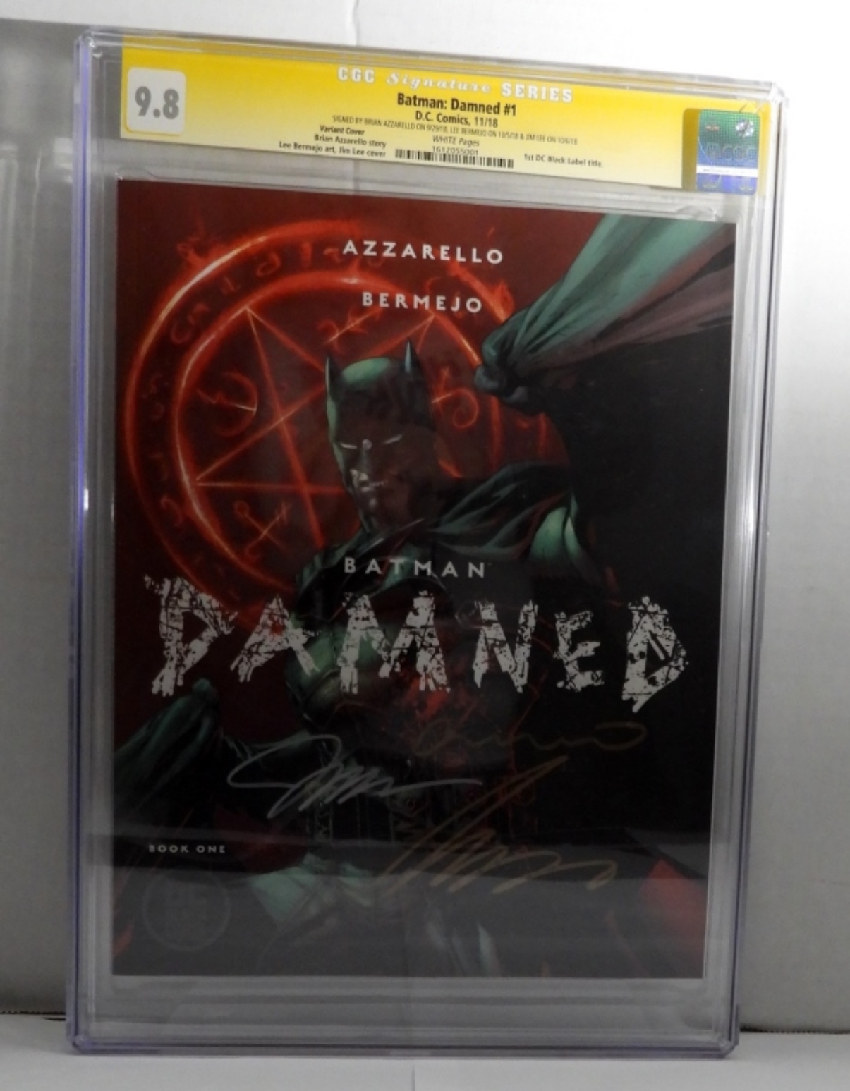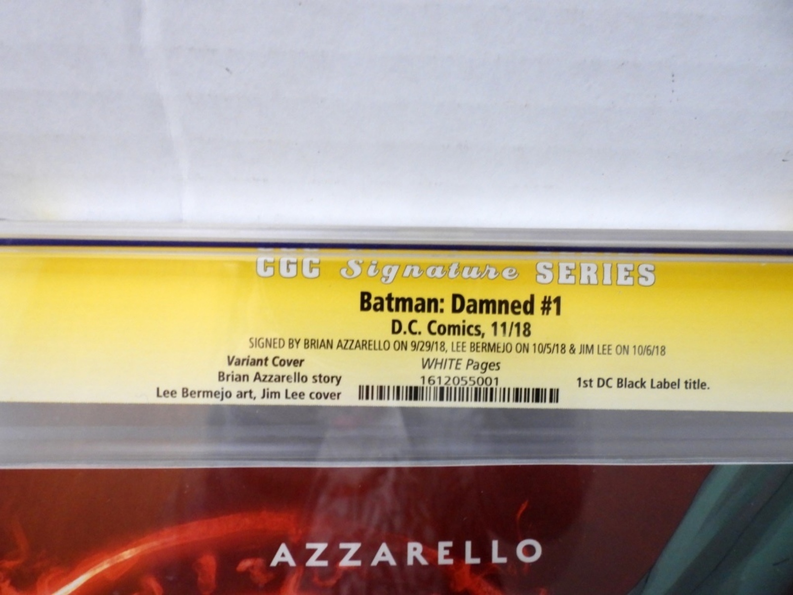 D.C. COMICS, 11/18 BATMAN: DEMANED #1 SIGNED by BRIAN AZZARELLO on 9/29/18 & LEE BERMEJOI on 10/5/18 & JIM LEE on 10/6/18 – VARIANT COVER (CORNER of CASE has SMALL CRACK)