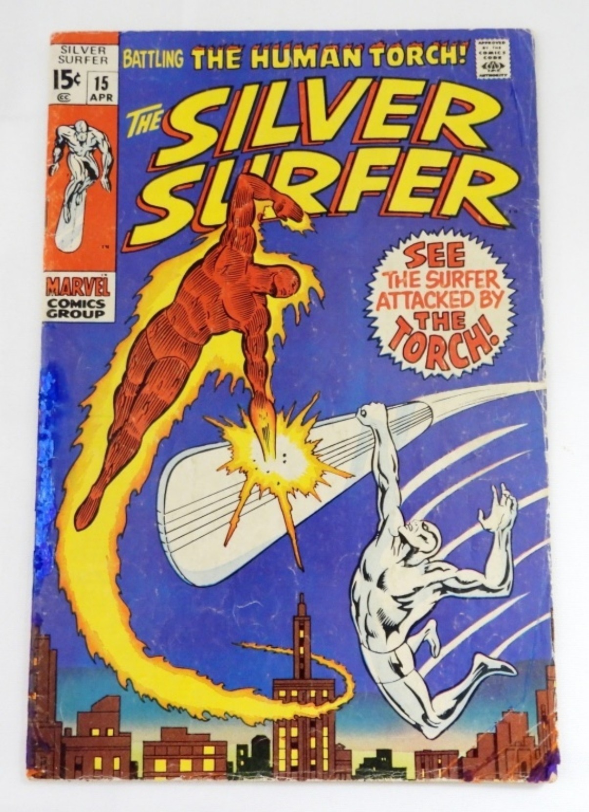 1970 MARVEL THE SILVER SURFER #15 (G-VG) BATTLE OF SILVER SURFER AND THE HUMAN TORCH