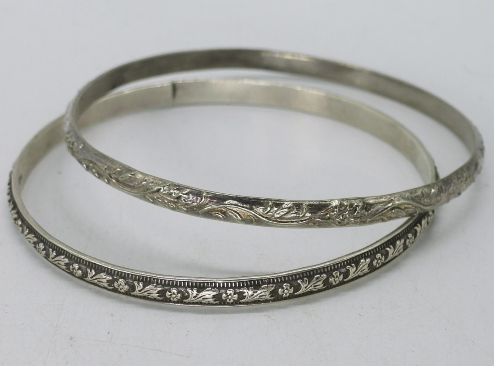 TWO STERLING BANGLE BRACELETS. 8″. 15 DWT