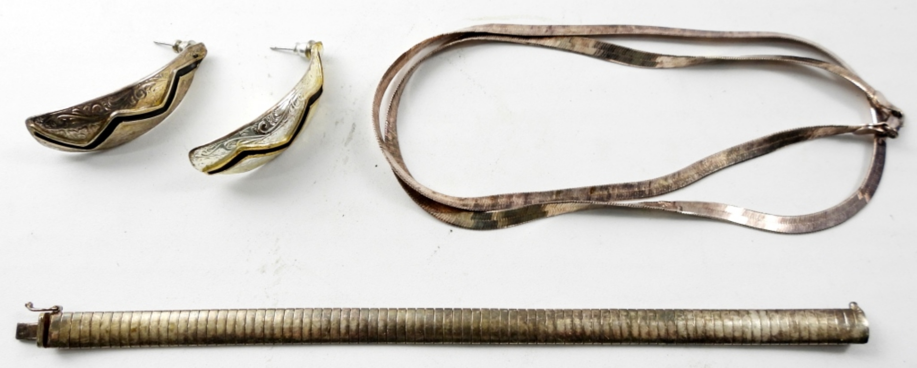 24″ 925 STERLING NECKLACE ,6″ BRACELET AND A PAIR OF MEXICO SILVER PIERCED EARRINGS (27.8 DWT)
