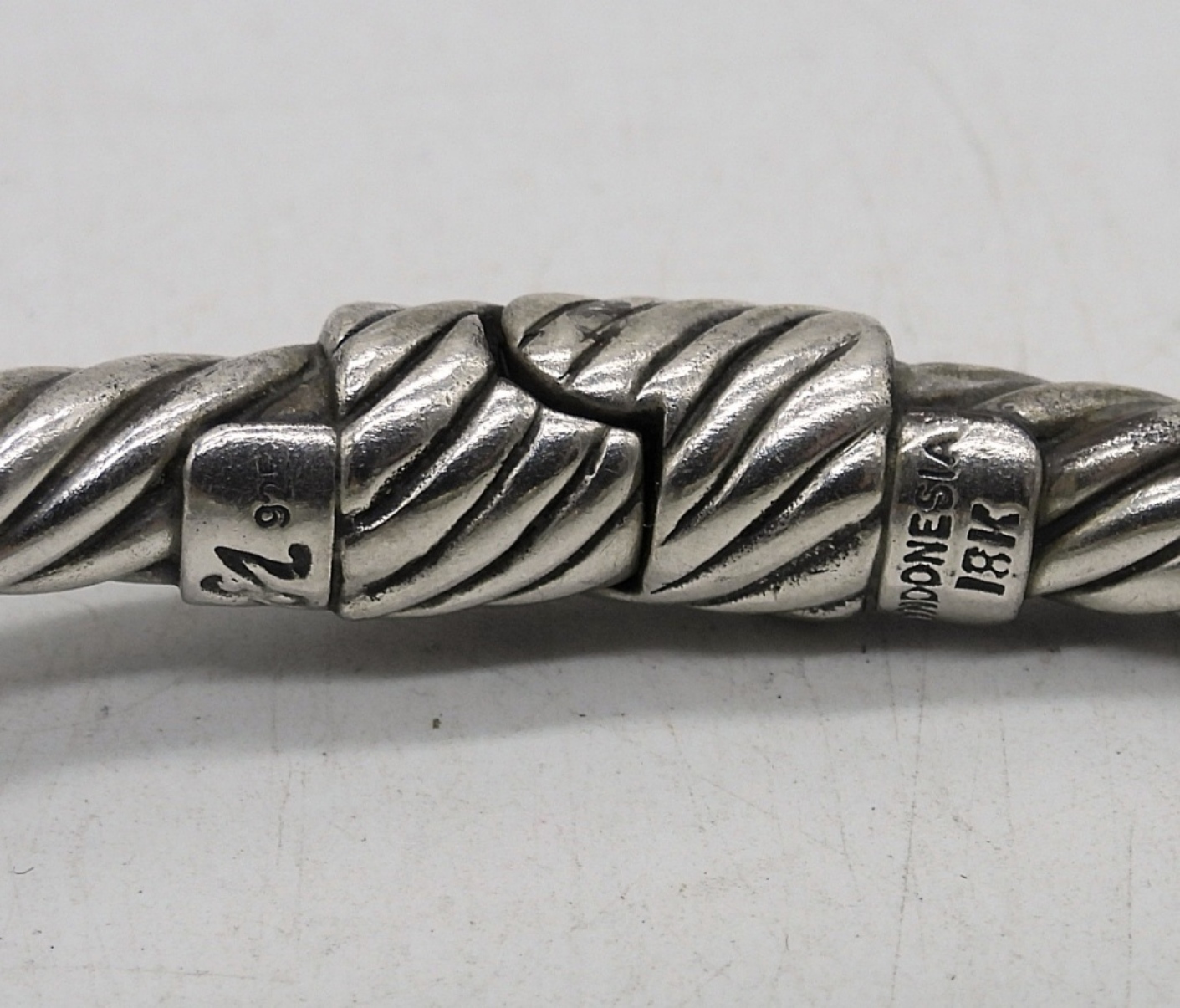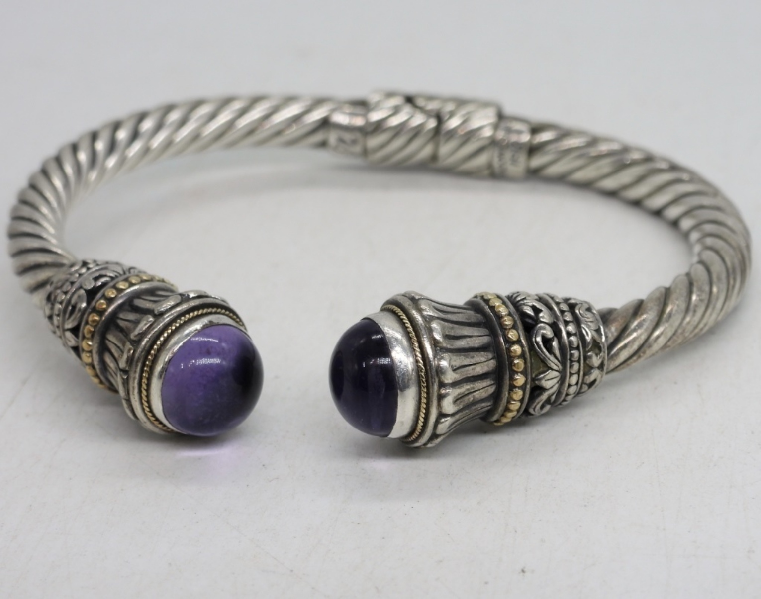 NOVICA STERLING 18KG (ONLY A VERY SMALL AMOUNT OF GOLD), AMETHYST GEMSTONE ENDS. HINGED. BEAUTIFUL PIECE! 19.9 DWT