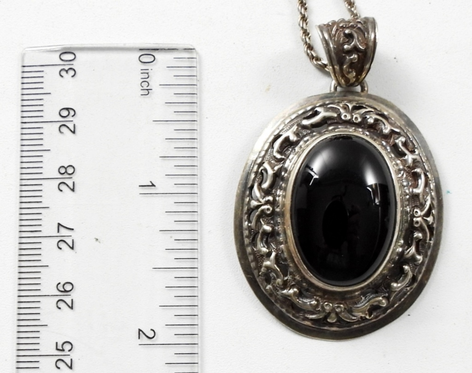 24″ NECKLACE AND PENDANT WITH ONYX STONE , A SIZE 8 RING WITH CLEAR GEMSTONE AND A 6″ MULTI STRAND BRACELET (59.6 DWT)