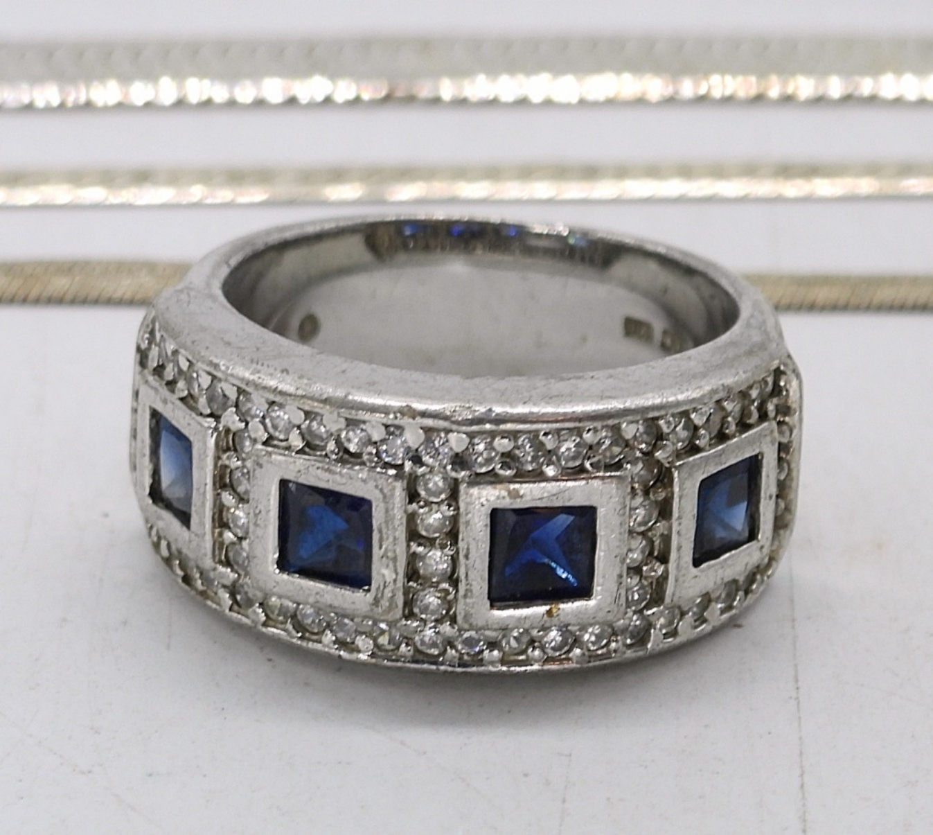 FOUR STERLING CHAIN BRACELETS, 7-8″. ONE RING, SIZE 7. PIERCED EARRINGS. 23.4 DWT