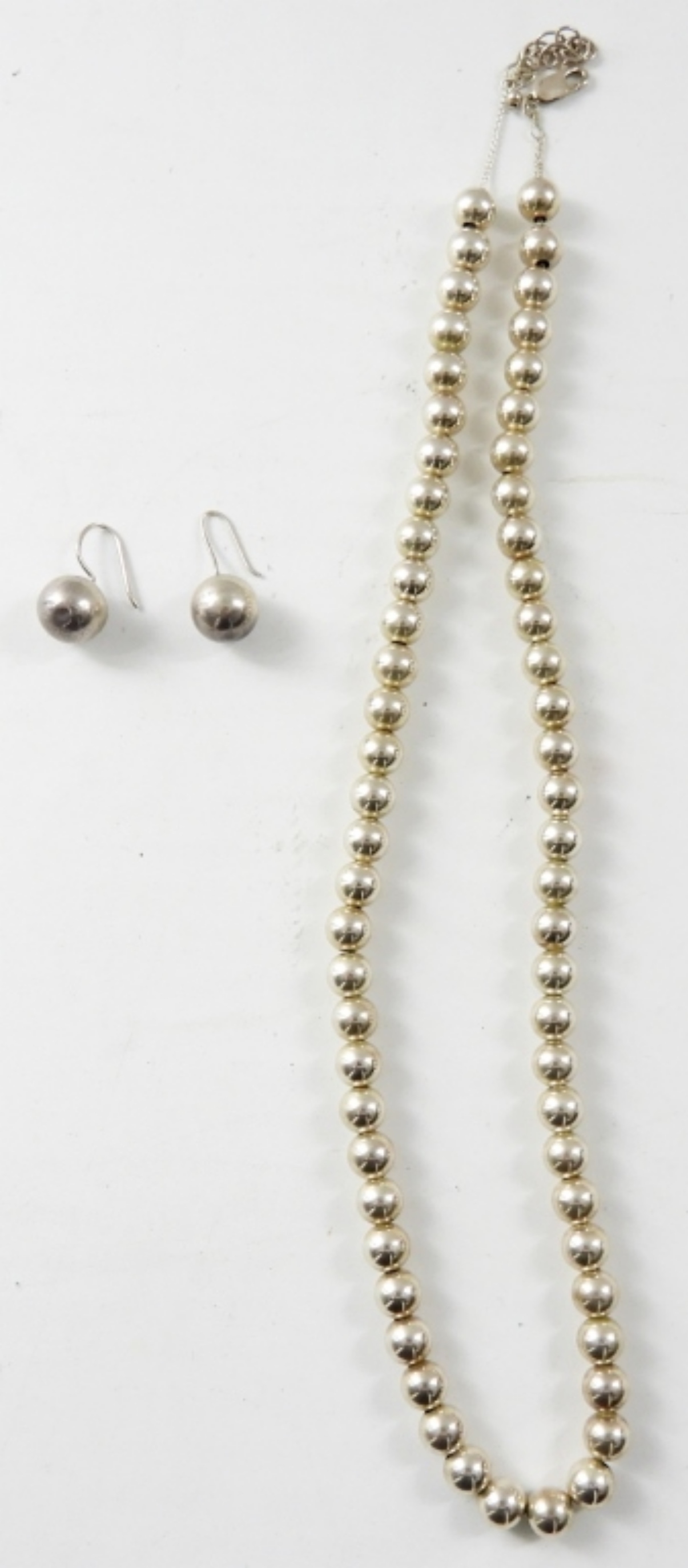 20.4DWT, NECKLACE 23IN LONG, WITH PIERCED DANGLED EARRINGS, NECKLACE MARKED 925