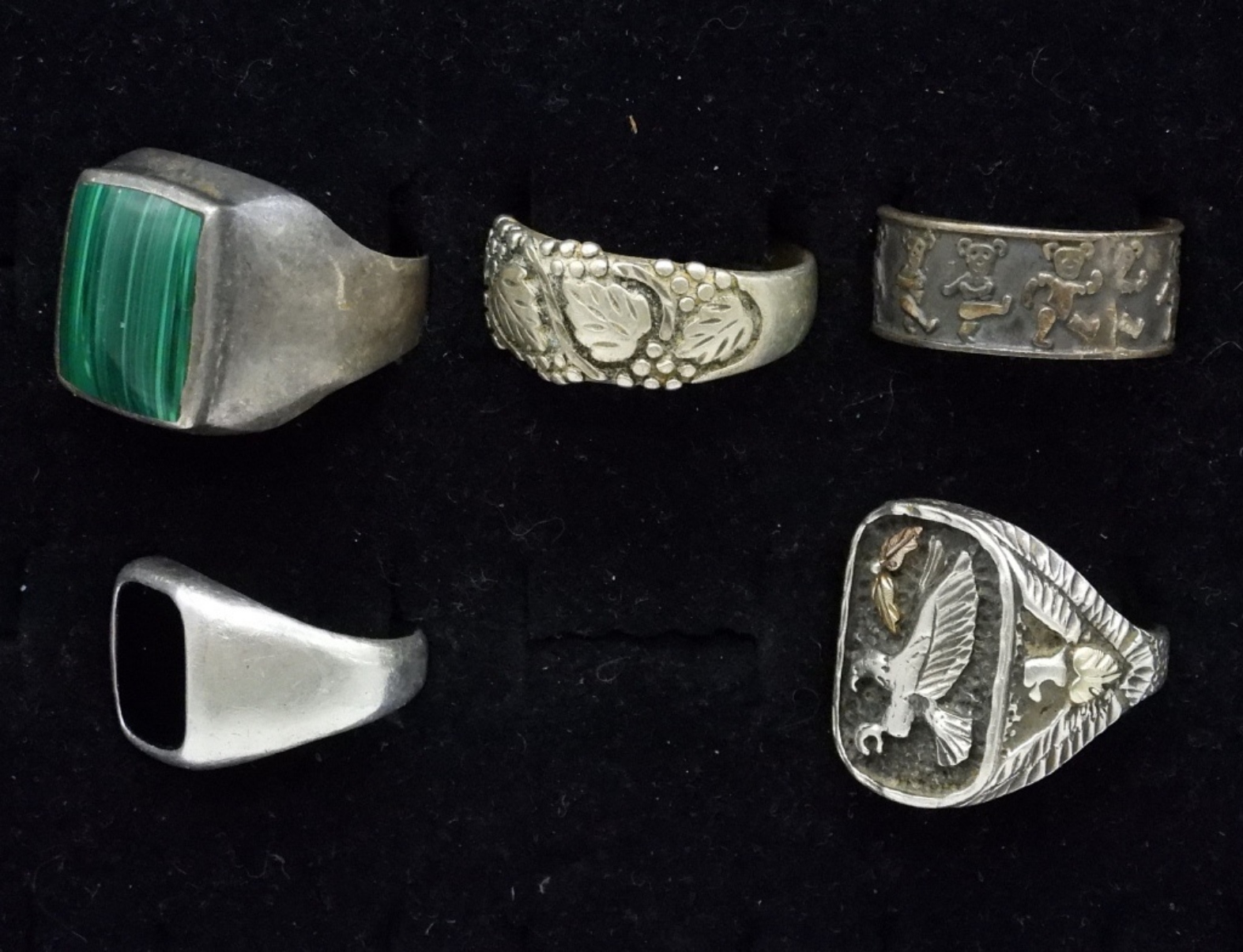 SIZES 9-12, MEXICO 925, GEMSTONE, GRATEFUL DEAD BEARS. SOME BANDS HAVE SLIGHT MISSHAPING. 28 DWT