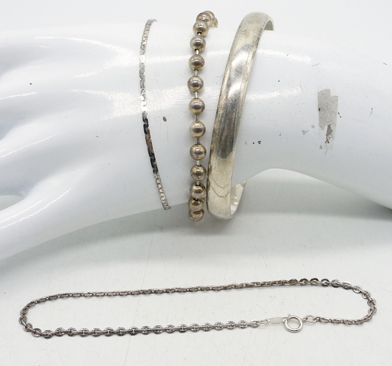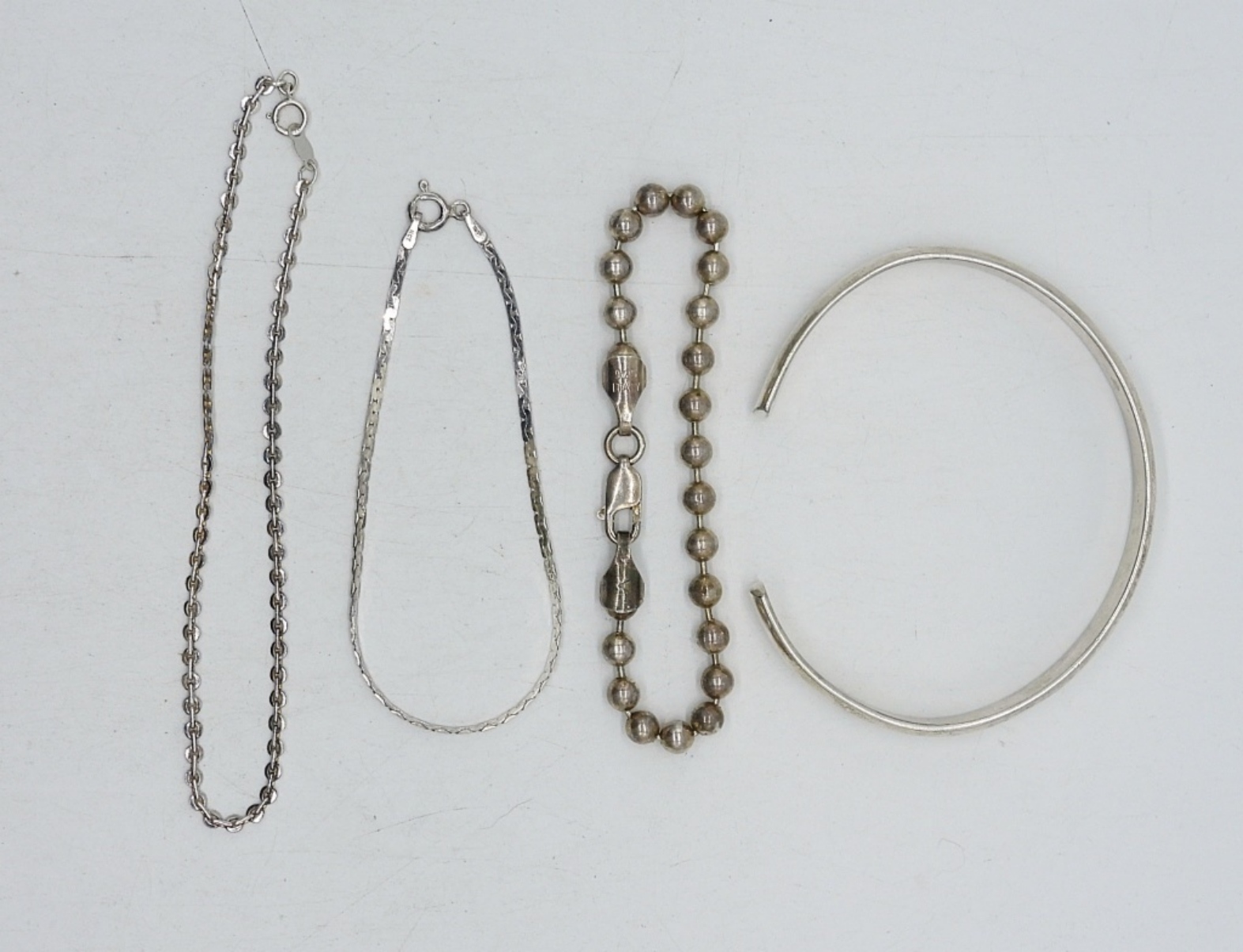 FOUR STERLING BRACELETS, 7-9″. 23.5 DWT