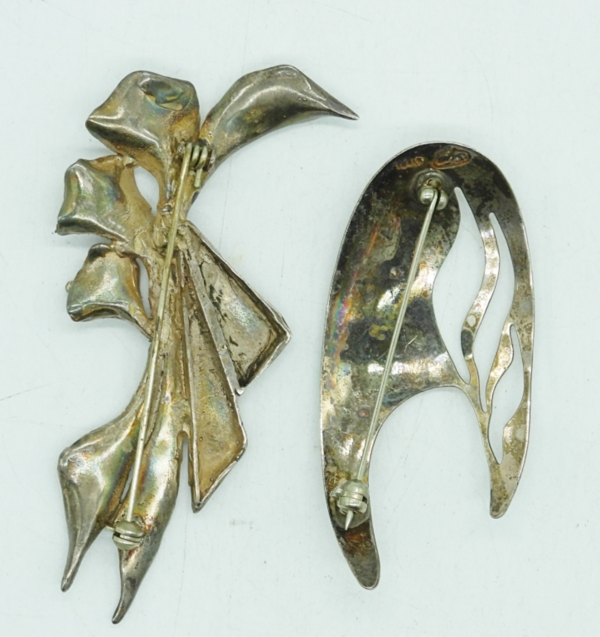 TWO LARGE VINTAGE STERLING BROOCHES. PEARLS. 3-3.5″. 18 DWT