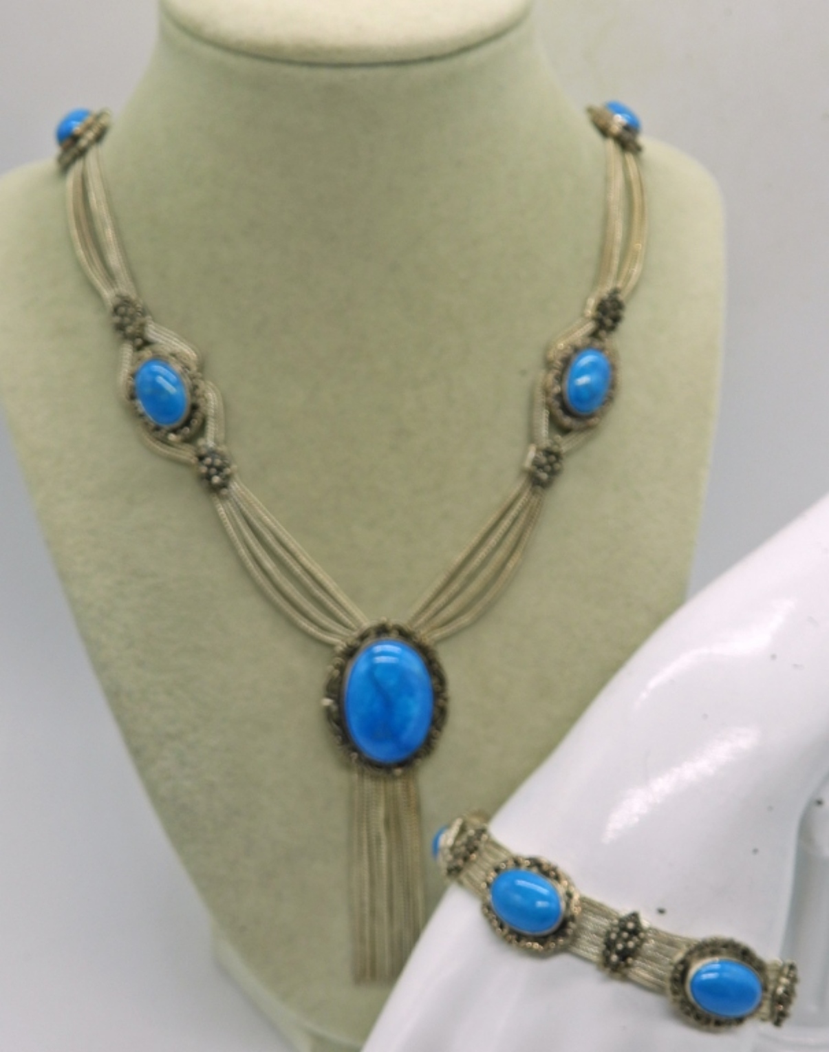 GORGEOUS STERLING MULTI STRAND MATCHING NECKLACE 30″ & BRACELET 7″. 75 DWT