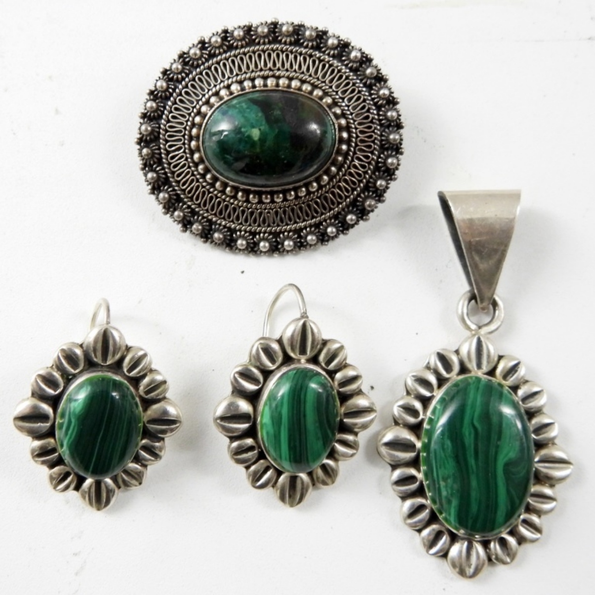 30DWT, 1 RING SIZE 7 STAMPED STERLING RB, 1 OVAL PENDANT/PIN STAMPED ISRAEL, TV-169 MEXICO 925 PENDANT AND EARRING SET