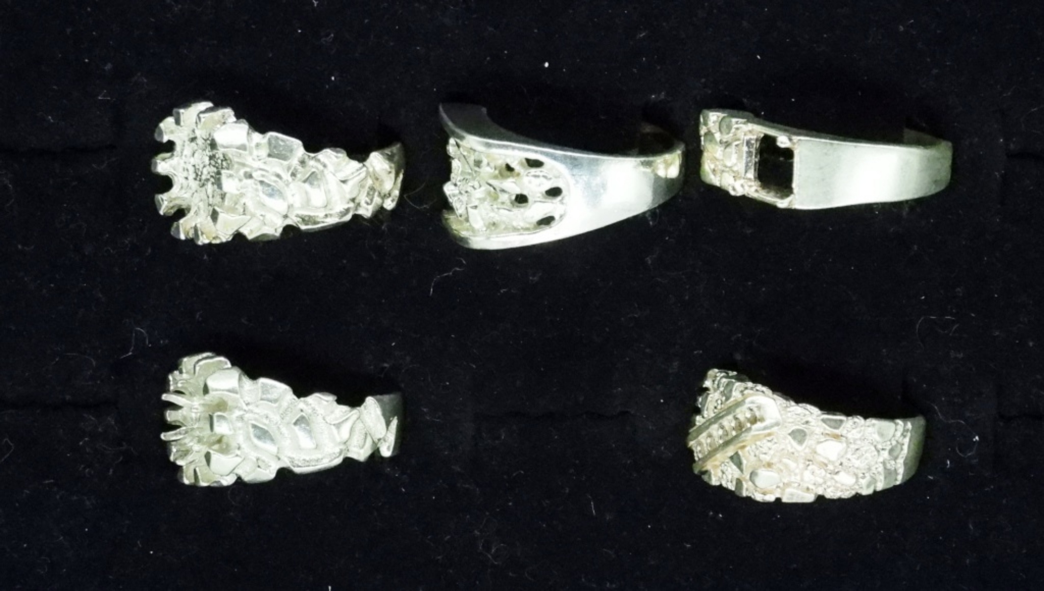 FIVE STERLING RINGS, EMPTY SETTINGS. GREAT FOR JEWELERS & CRAFTERS. SIZES 9.5-10.5. 32.7 DWT