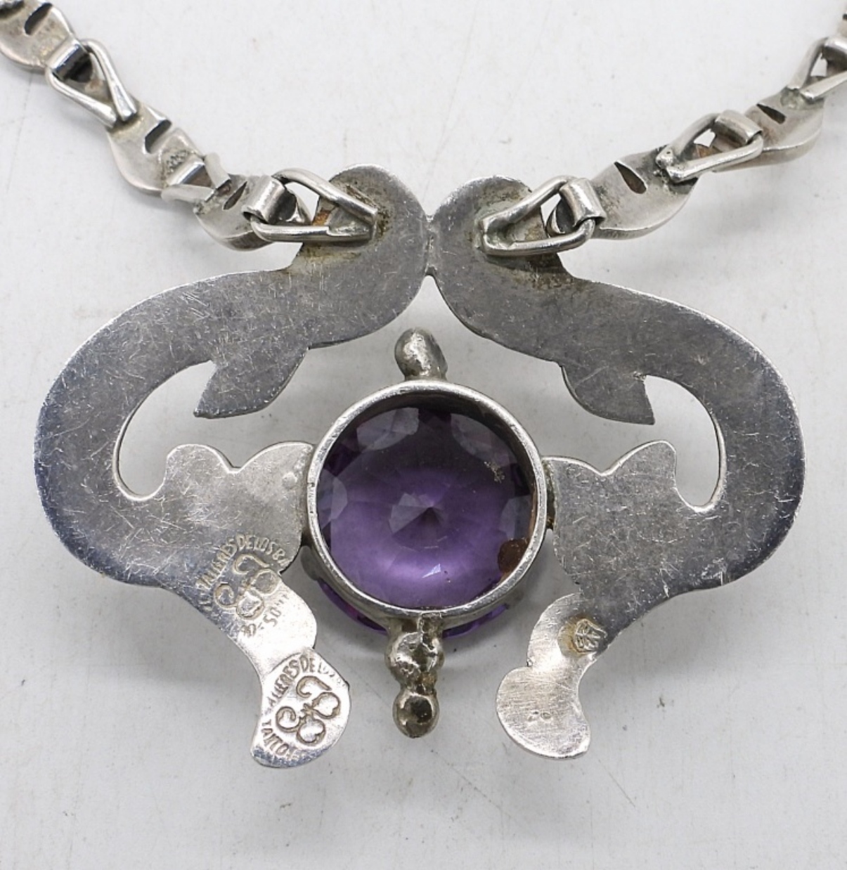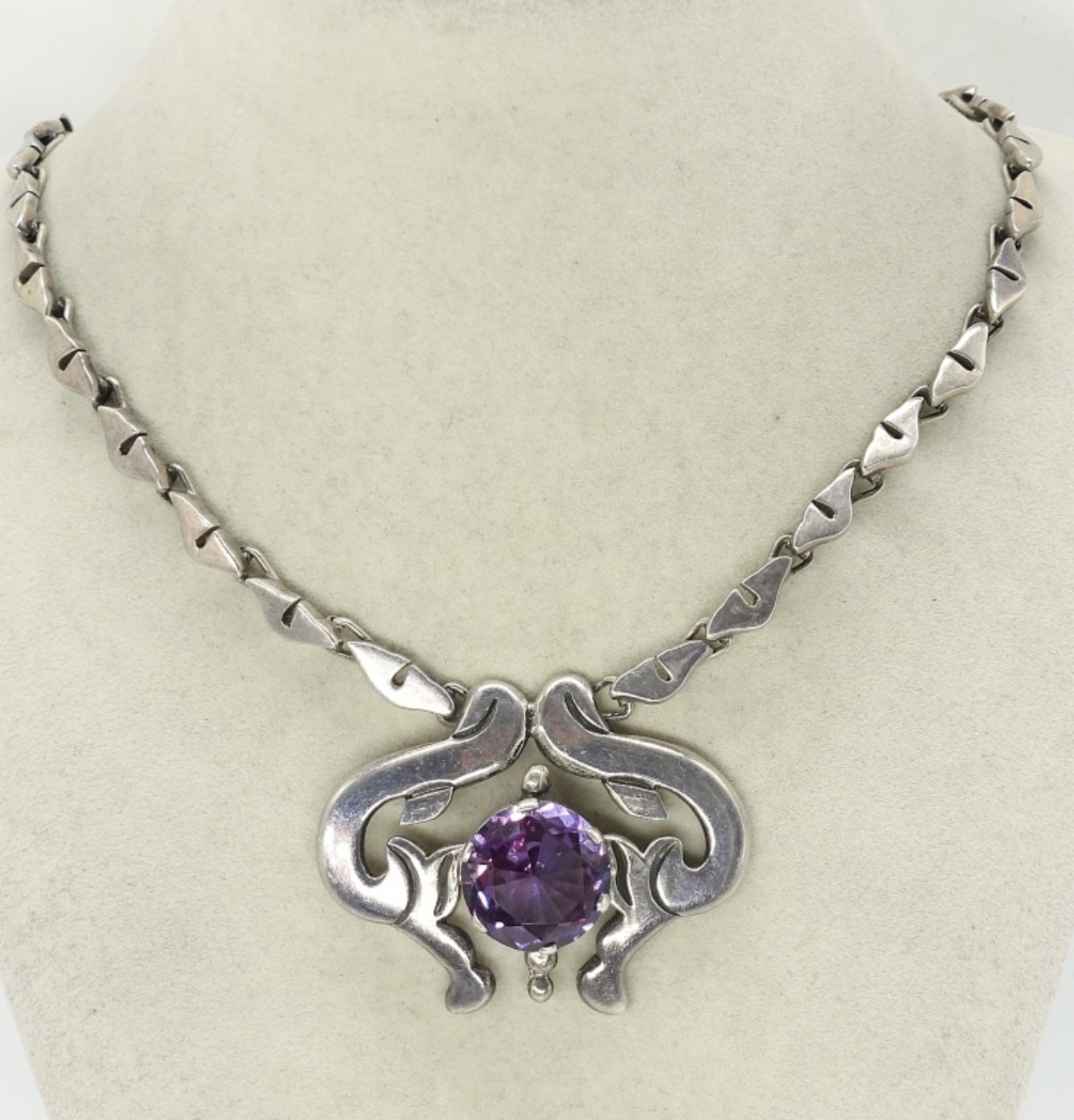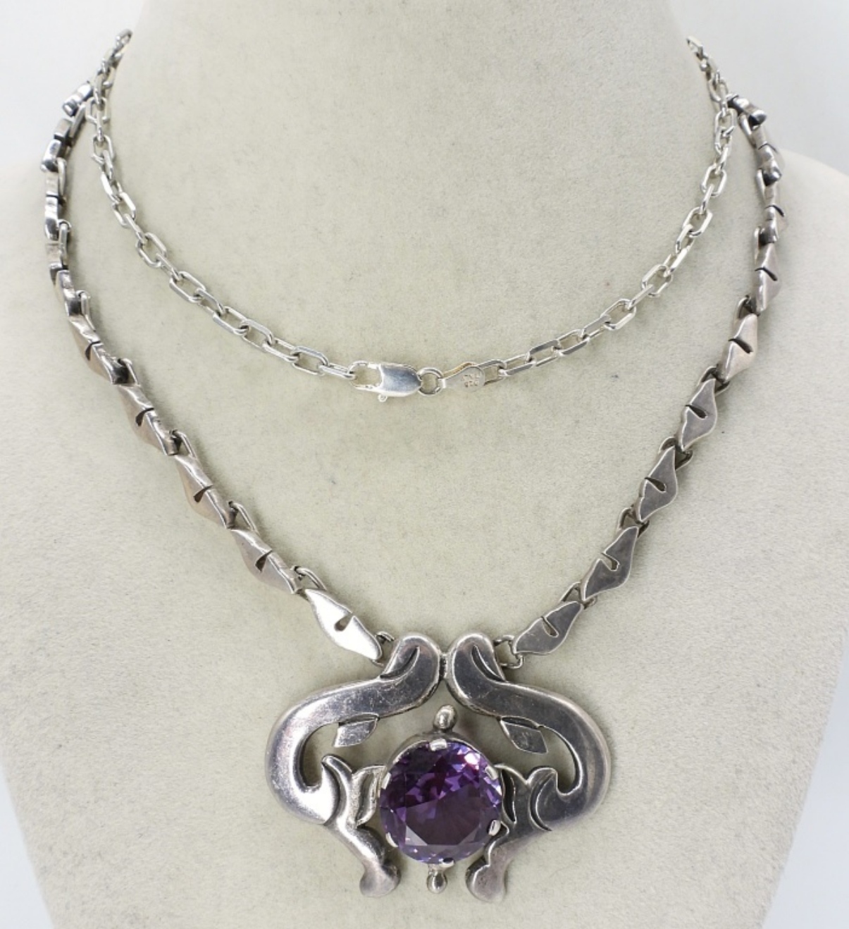 GORGEOUS STERLING SILVER, VINTAGE NECKLACE WITH A VERY LARGE MYSTIC TOPAZ GEMSTONE. 28″. 39 DWT
