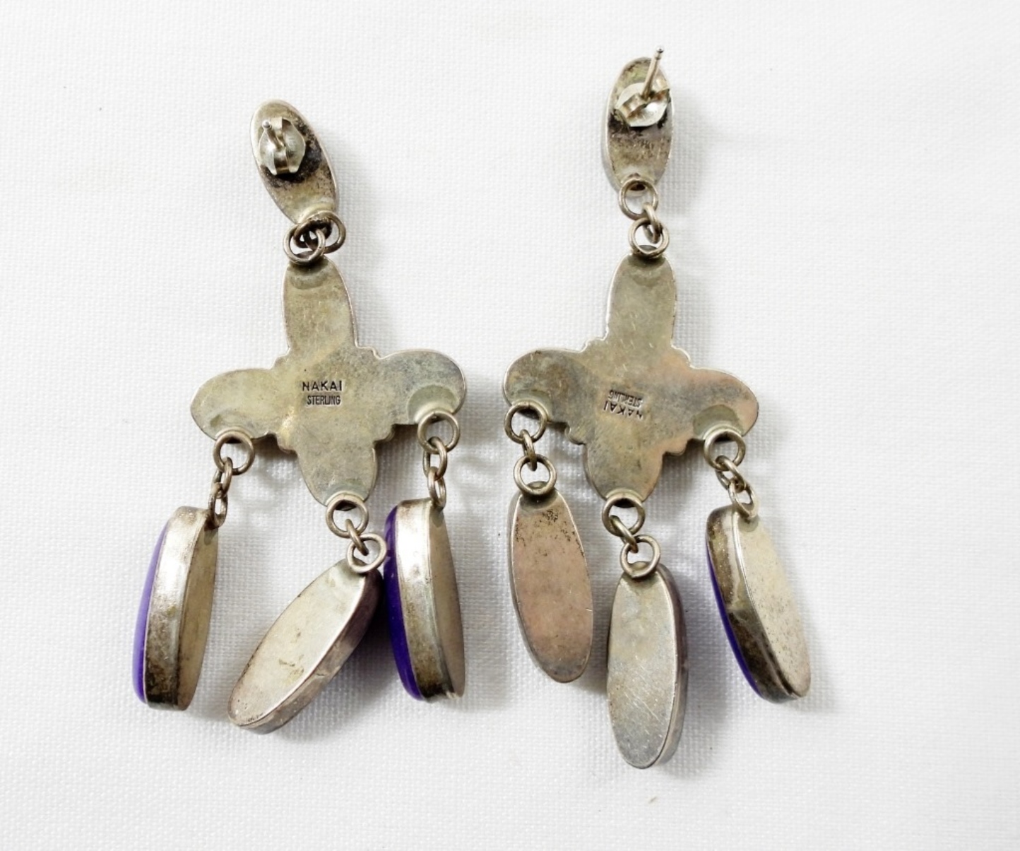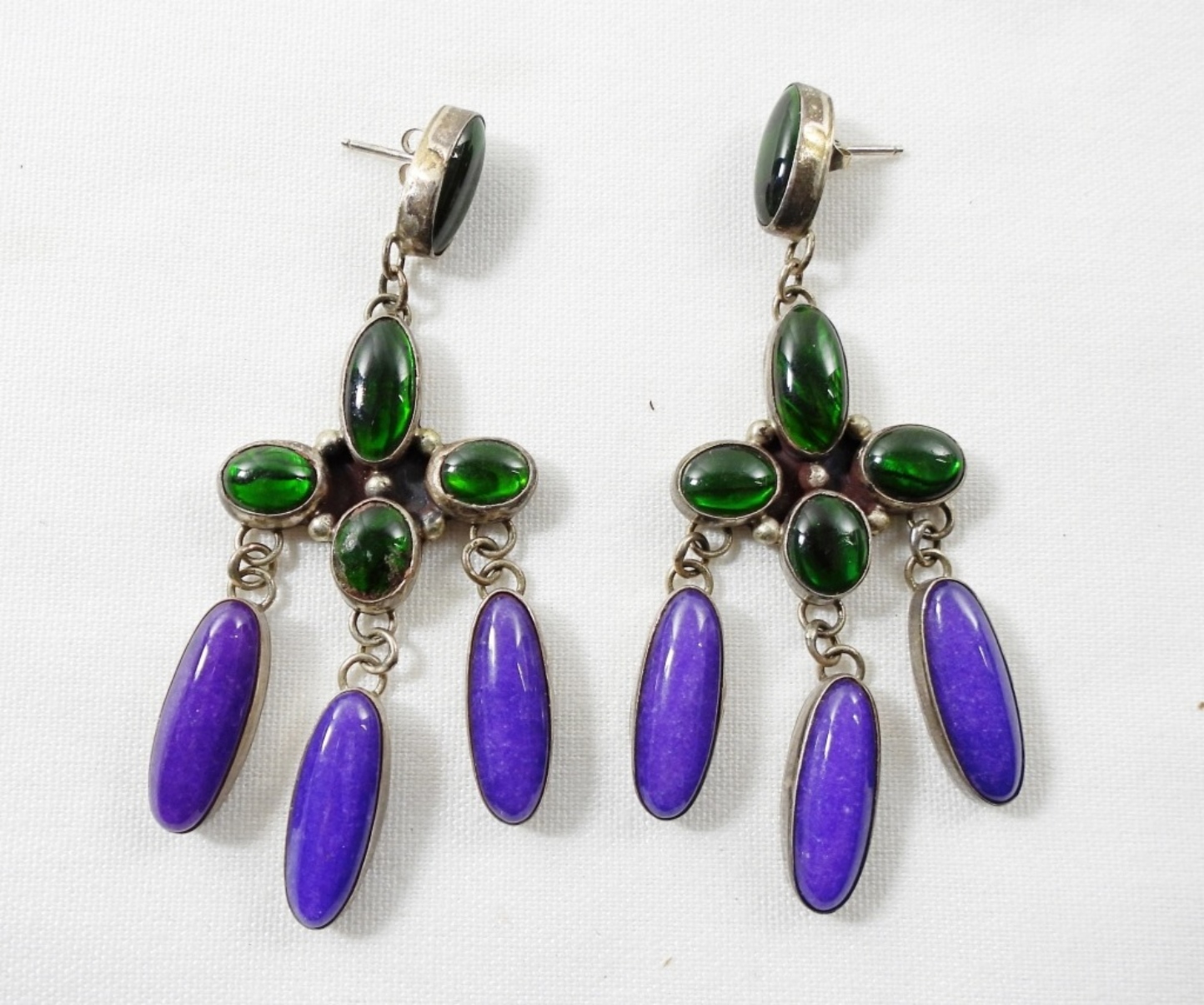 BEAUTIFUL GREEN AND PURPLE STONE DANGLE EARRINGS STERLING SILVER 925 15.2 DWT