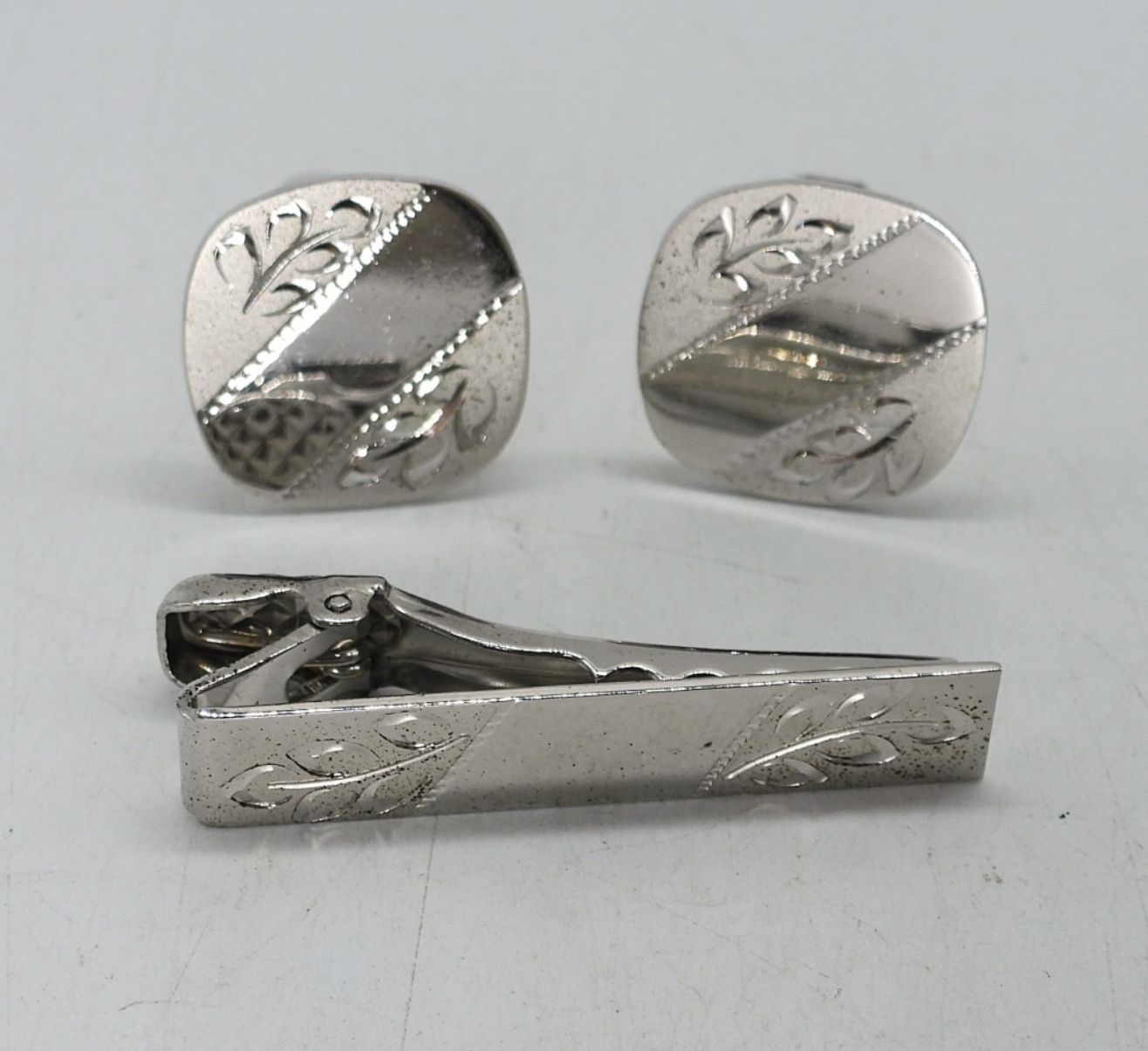 MATCHING STERLING, MEN’S CUFF LINKS & TIE CLIP. 10.4 DWT