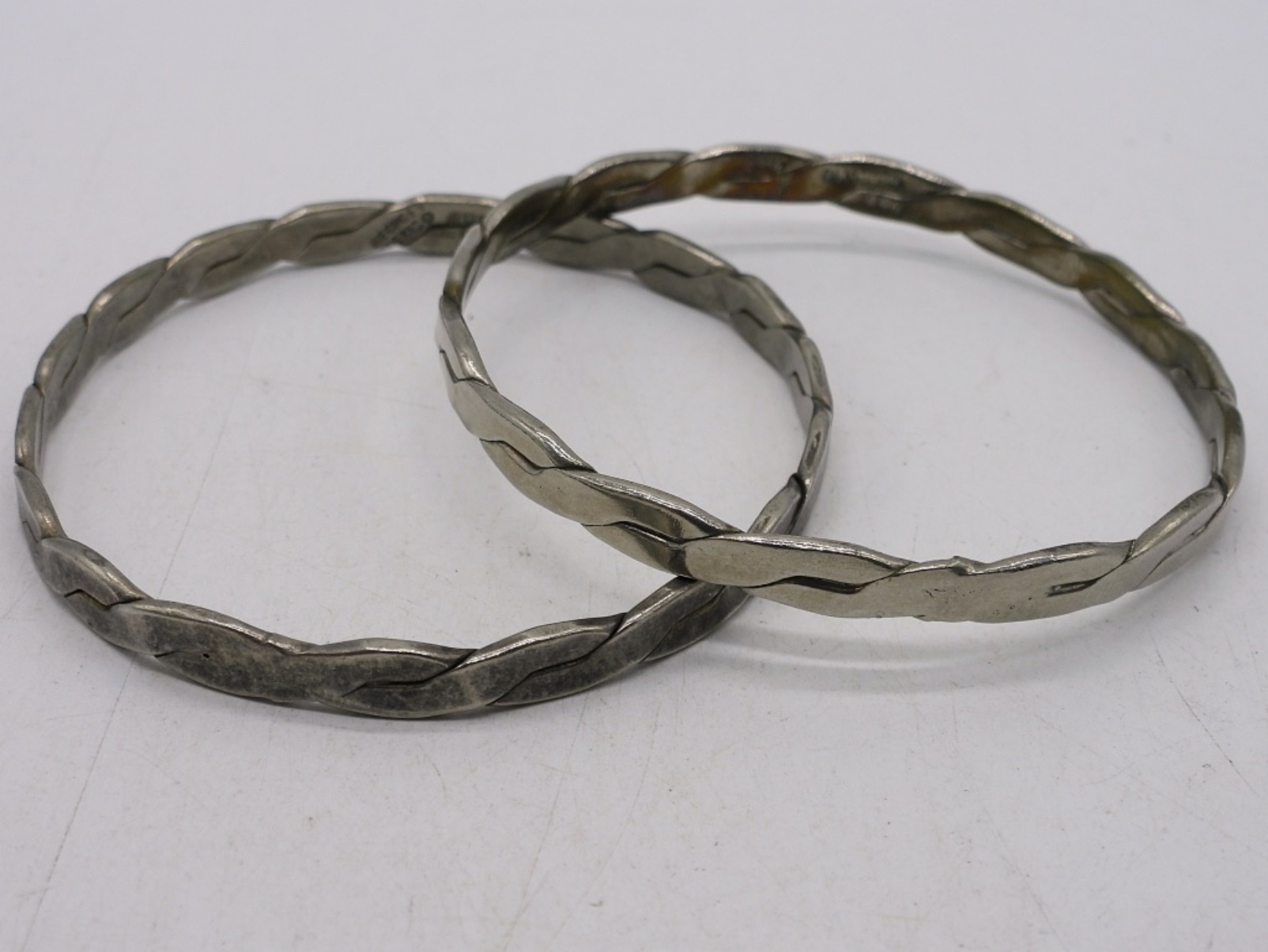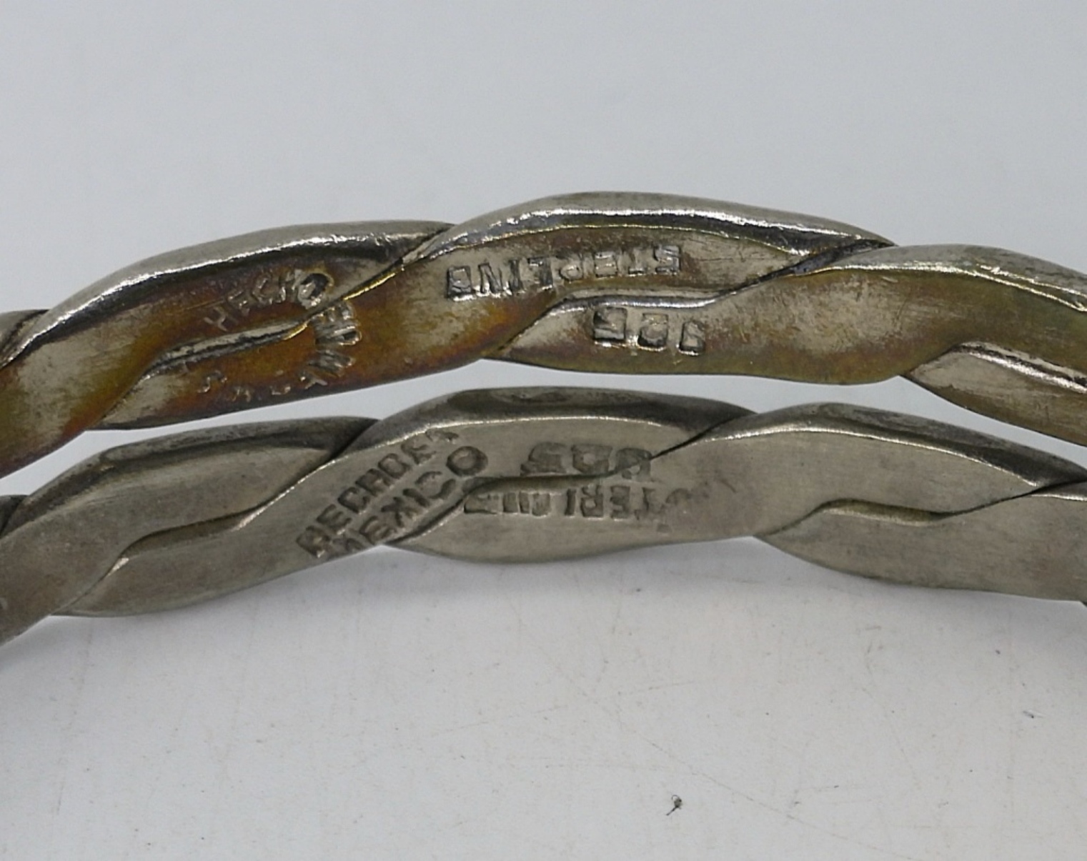 TWO STERLING BANGLE BRACELETS. MARKED MEXICO 925. 22.4 DWT