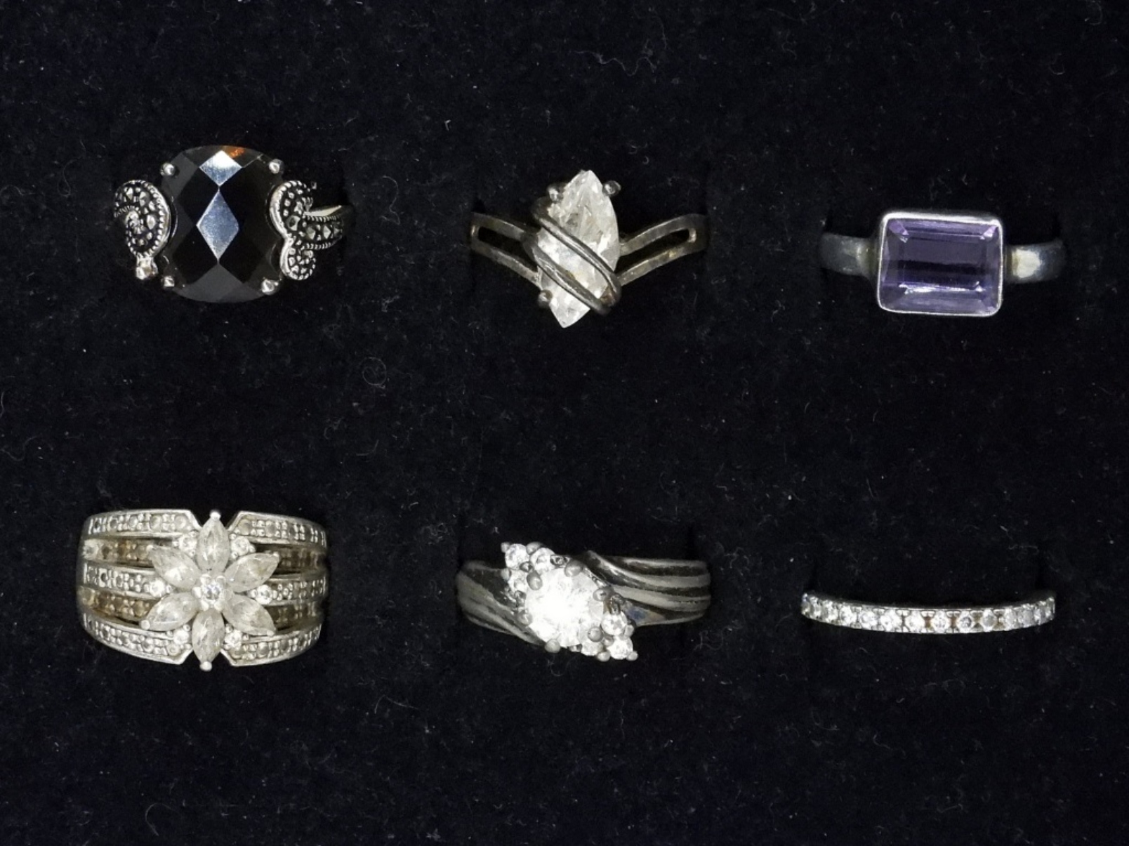 SIX STERLING SILVER LADIES RINGS, SIZES 6-7.5. 13 DWT
