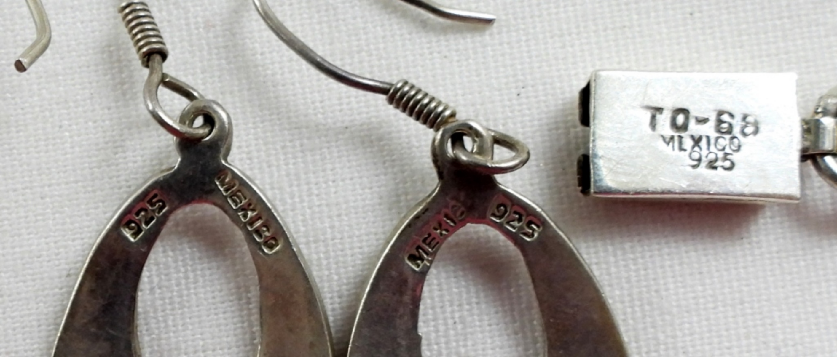 28DWT, BRACELET 8IN LONG STAMPED ON BOX CLASP TO-68 MEXICO 925, PIERCED DANGLED EARRINGS STAMPED MEXICO 925