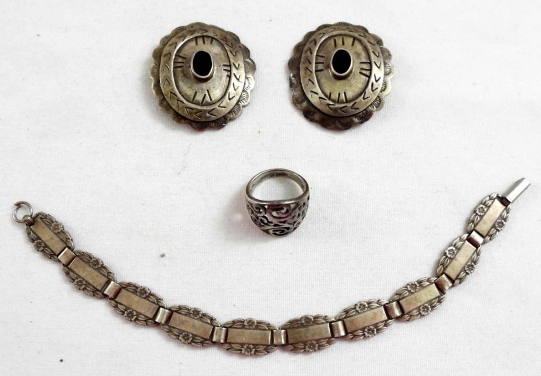 MEXICO TM-212 CHONCHO EARRING CLIP ON & RING SIZE 6 (28 DWT)