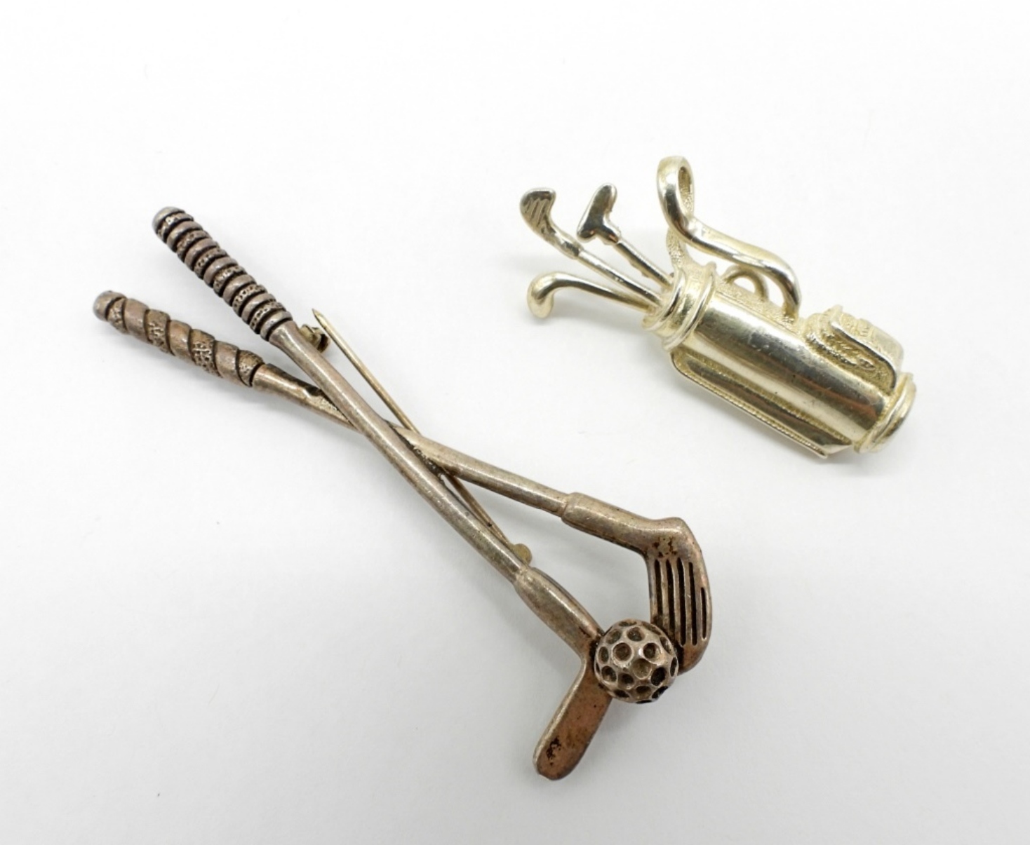 VINTAGE STERLING GOLF CLUB PINS. BOTH ARE STAMPED “MEXICO 925”. 19.6 DWT
