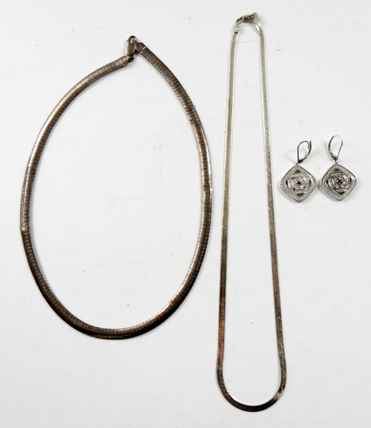 (2) 925 NECKLACES 16″-18″ AND A PAIR OF EARRINGS (30.0 DWT )