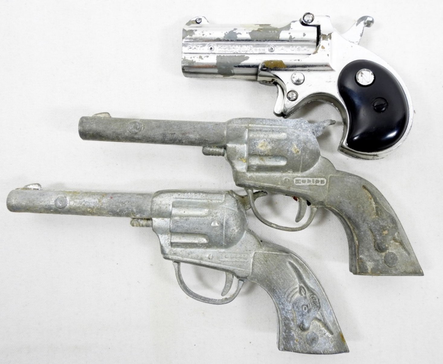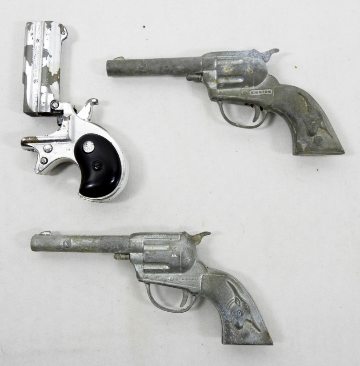 (3) VINTAGE CAP GUNS (2) HUBLEY TEX CAP GUNS &1 DERRINGER CAP GUN