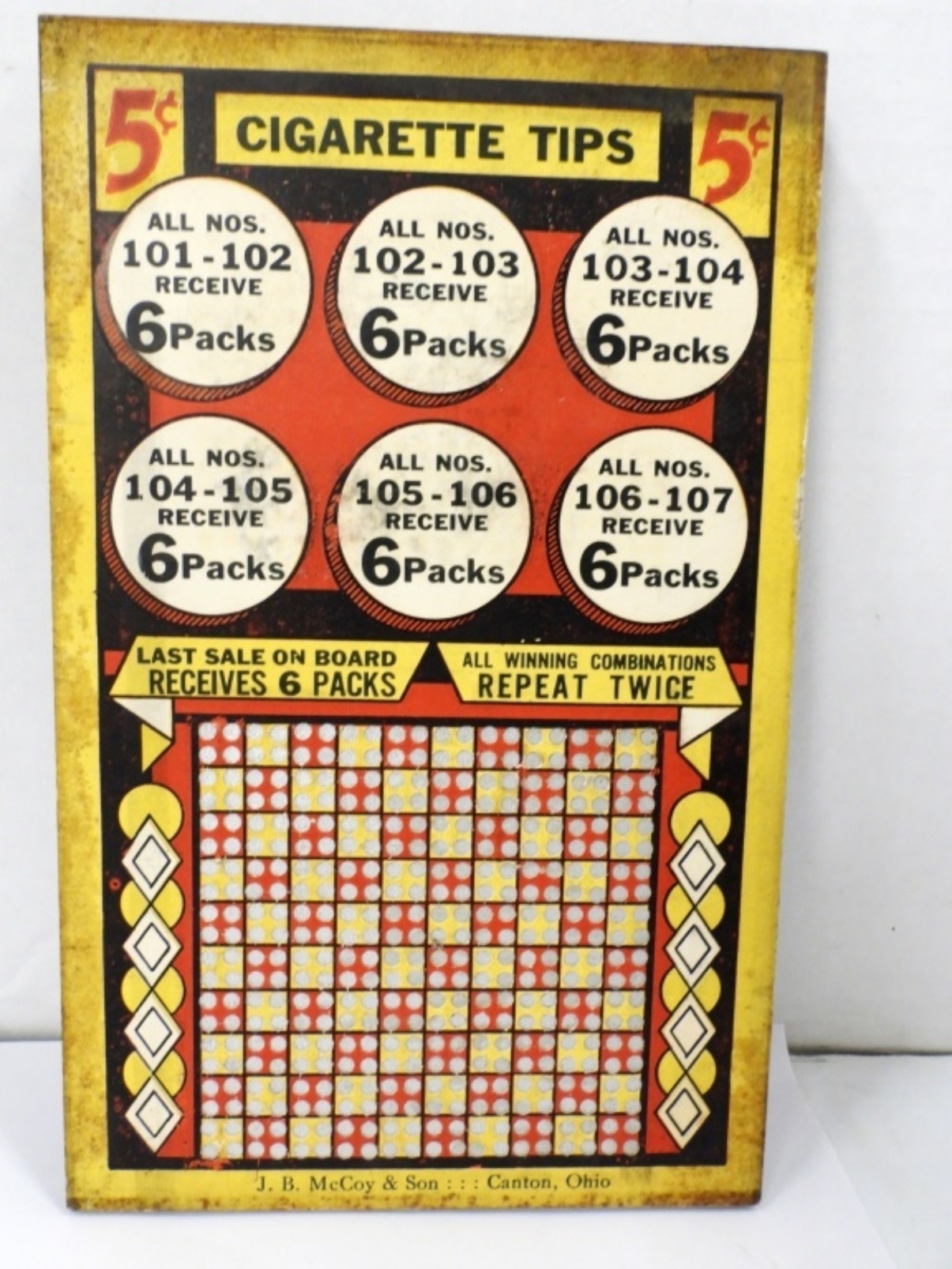 VINTAGE 5c CIGARETTE GAMBLERS PUNCHBOARD (UNUSED WITH PUNCH KEY SEALED ) J.B MC COY CANTON OH (SERIAL # 7871)
