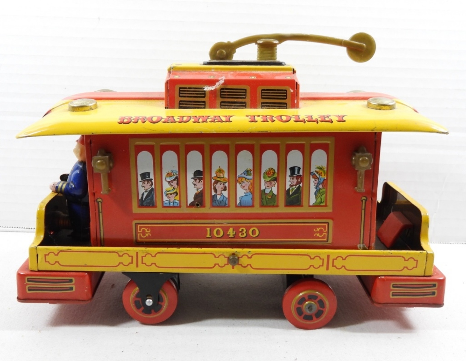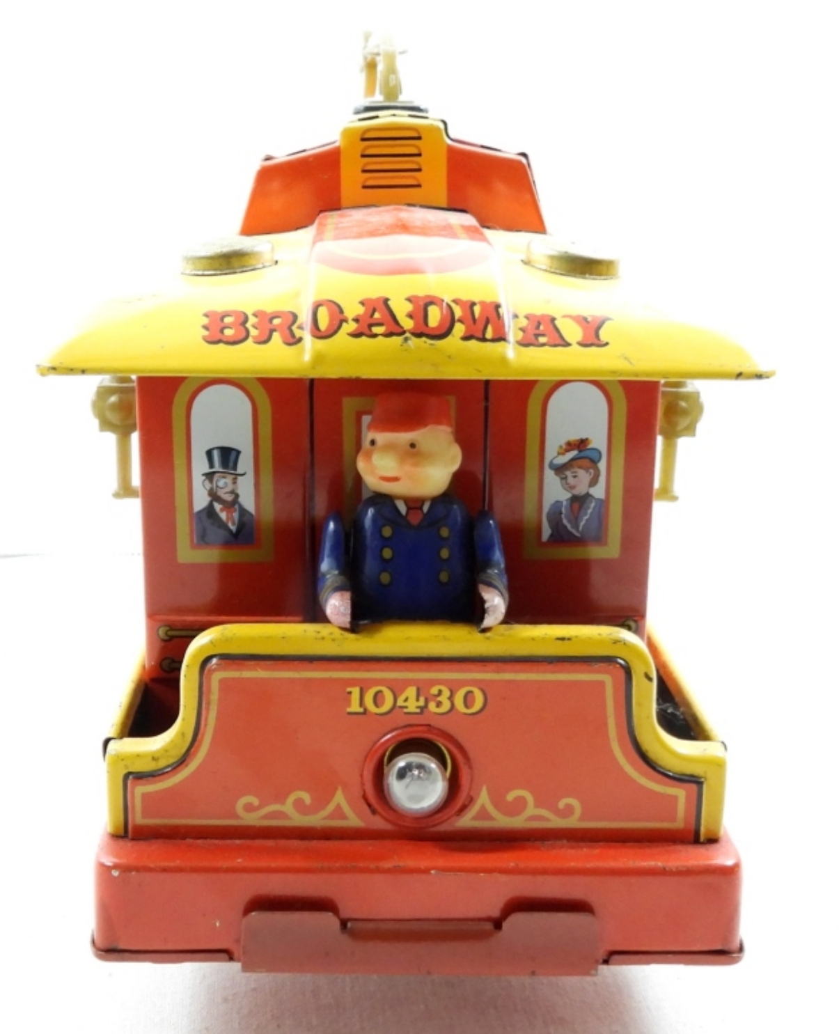 1960’S TIN BATTERY OP BROADWAY TROLLEY. TRADE MARK MODERN TOYS ( NOT TESTED AS TO WORKING OR NOT)