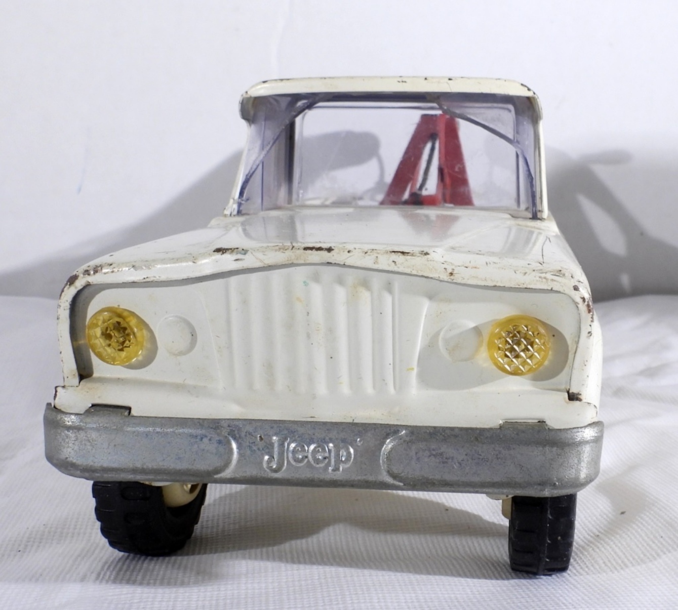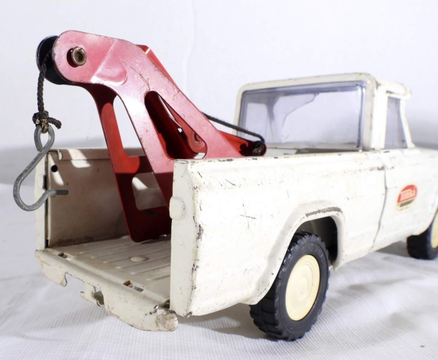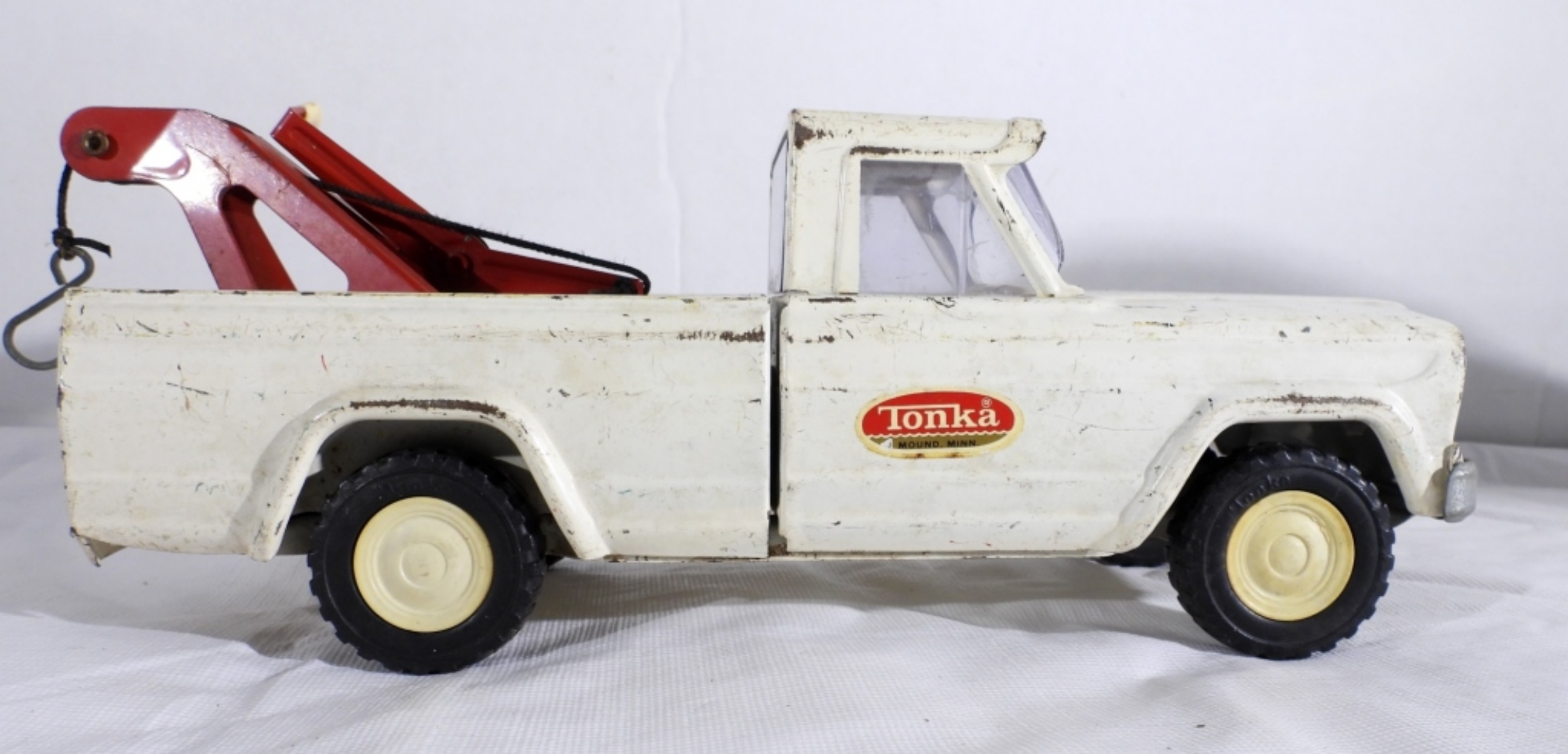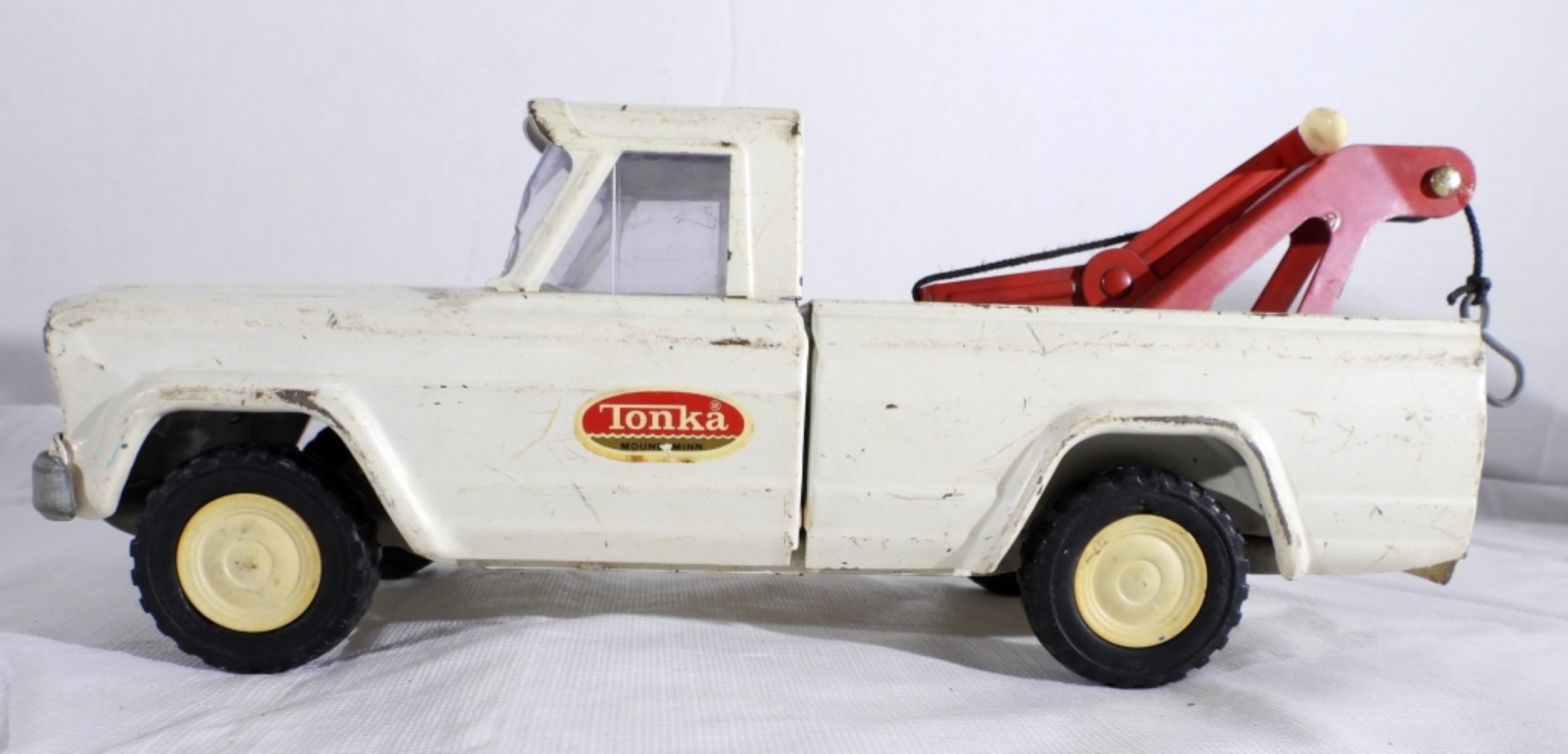 VTG JEEP TONKA WRECKER TOW TRUCK IN GOOD CONDITION DOES HAVE WEAR ON THE BODY WITH SOME SCRATCHES. THE HOOK STILL WORKS. PREOWNED.