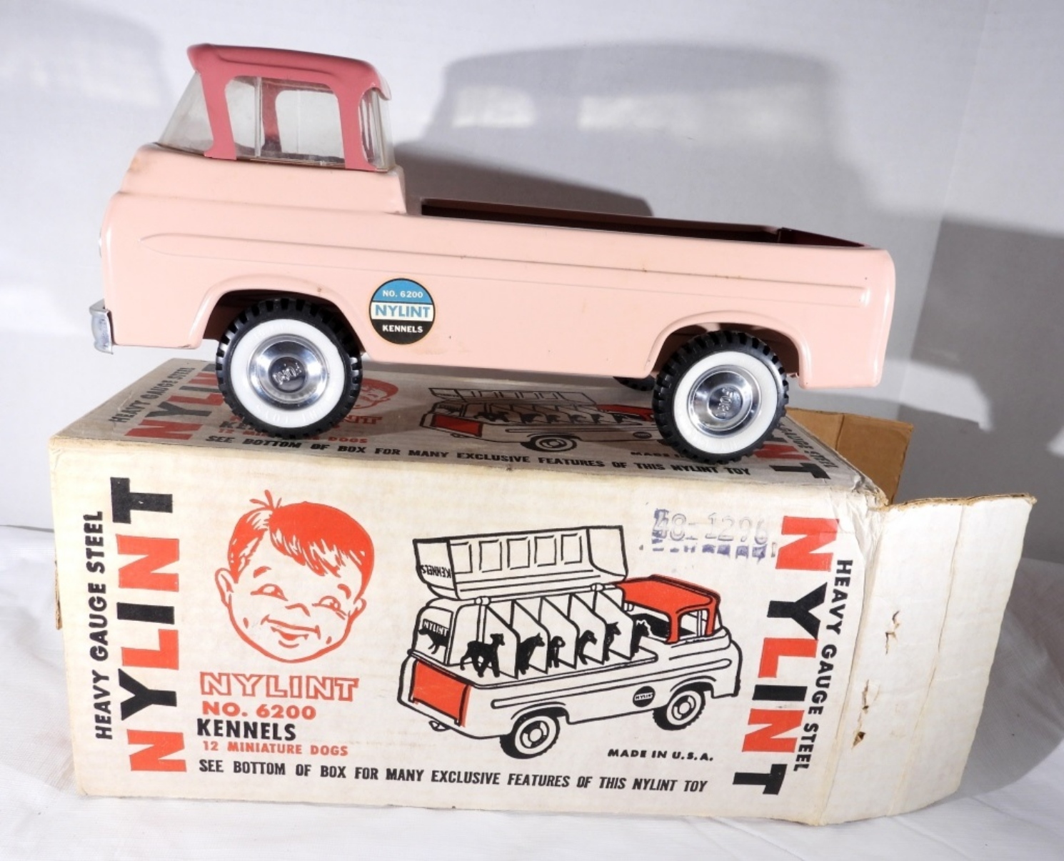 NYLINT NO. 6200 KENNELS WITH ORIGINAL BOX- THE TOPPER TO THE KENNELS (PLASTIC ON THE TOPPER IS BROKEN AND CRACKED SO IT DOES STAY ON TOP OF THE BED BUT DOES NOT CLIPPED IN DUE TO THE CLIPS ARE BROKE) THERE ARE NO DOGS